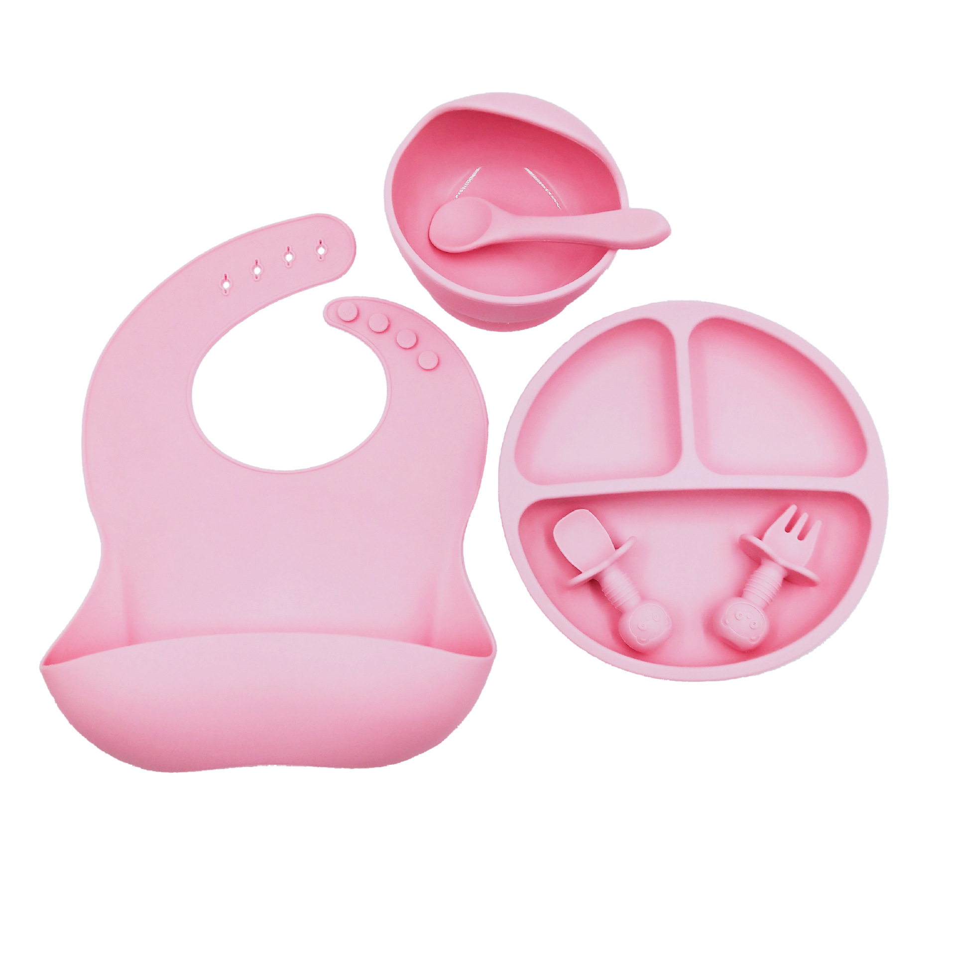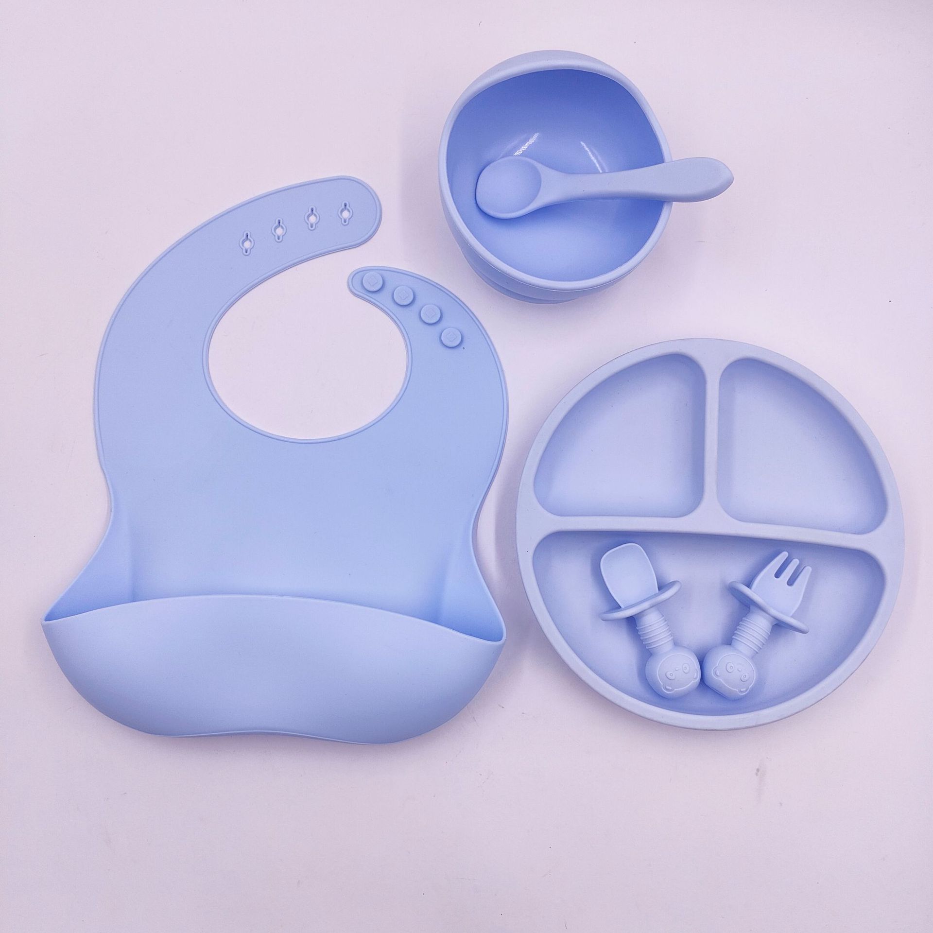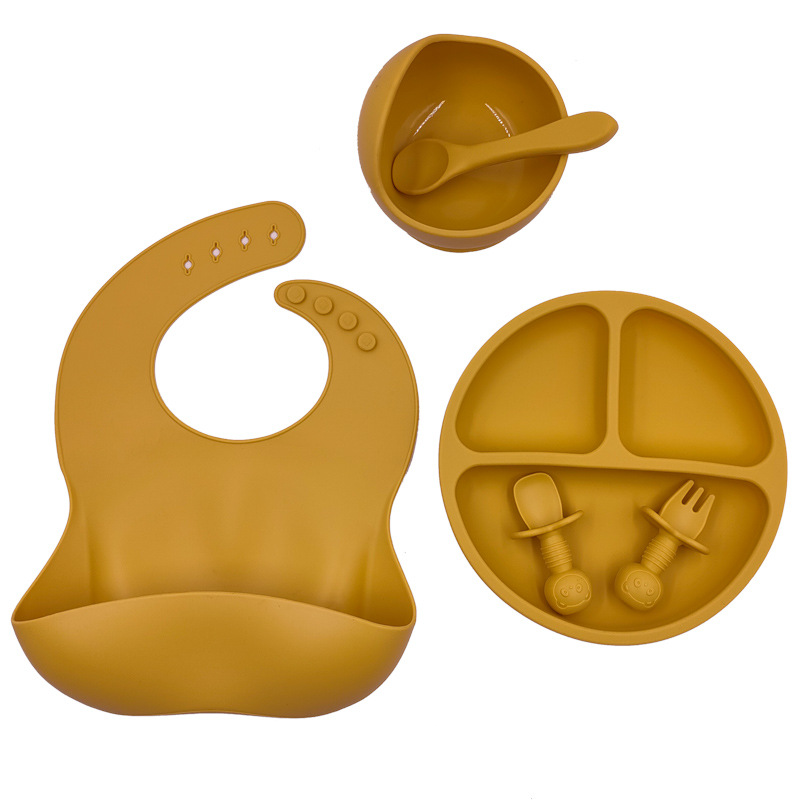 Baby silicone tableware set children's food supplement bowl spoon smiley face plate baby saliva pocket silicone baby tableware