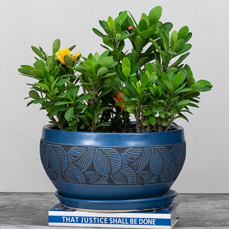 Thicken 28 cm ceramic pot cleaning large number of household green plant pot tray large caliber flower pot