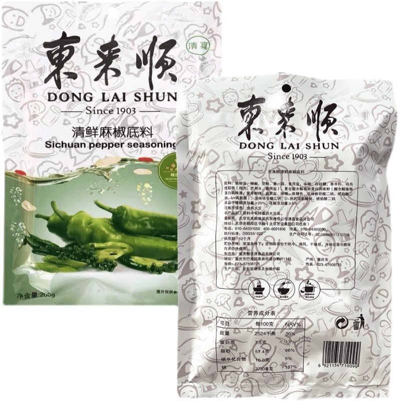 Donglai Shunching oil and spicy hot pot bottom material 200g * 3 bags clear and old Beijing boiling meat seasoned with spicy and hot pepper