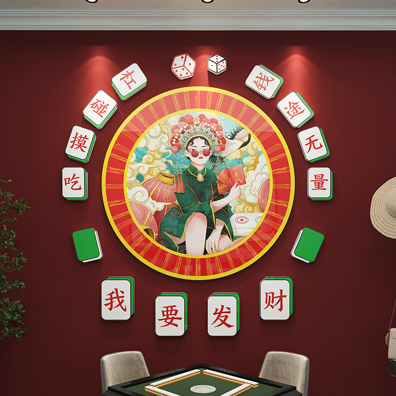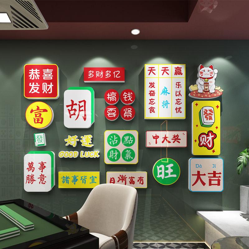 Mahjong Hall decorated wall with theme room cultural layout products net red slogan 3D stereo wall pattern