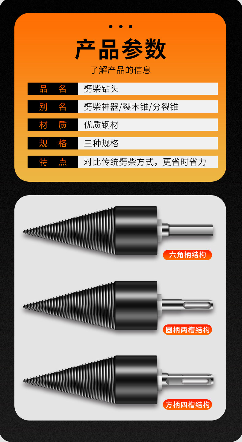 Chai wood artifact carpentry broken wood split cone household electric hammer electric drill impact drill special square round hexagonal handle connecting rod