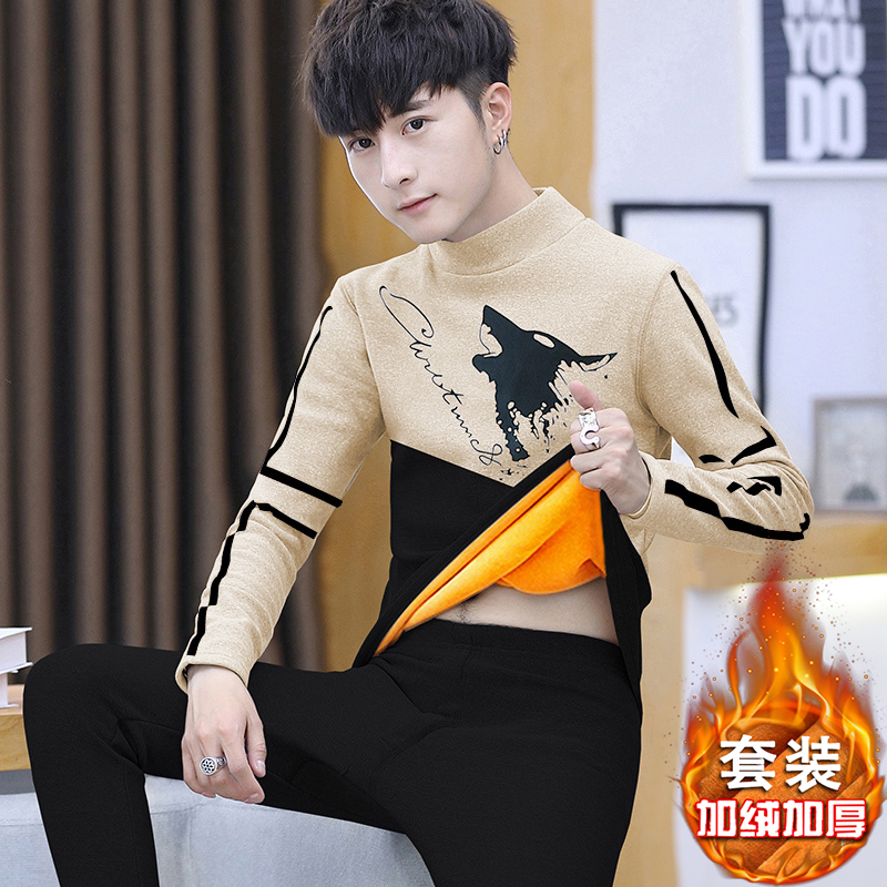 Winter Fever Coat Men Thicken Plus Suede Suit Teenagers Great Boy Gold Suede Undershirt Anti Cold Autumn Clothing Sanitary Pants