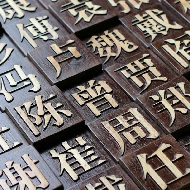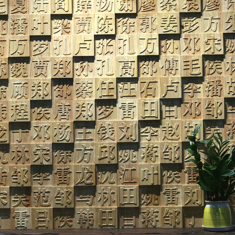 3D movable type printing solid wood carving hundreds of surnames culture log mosaic tea room living room physical decoration hanging picture