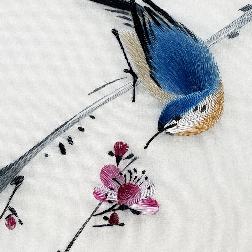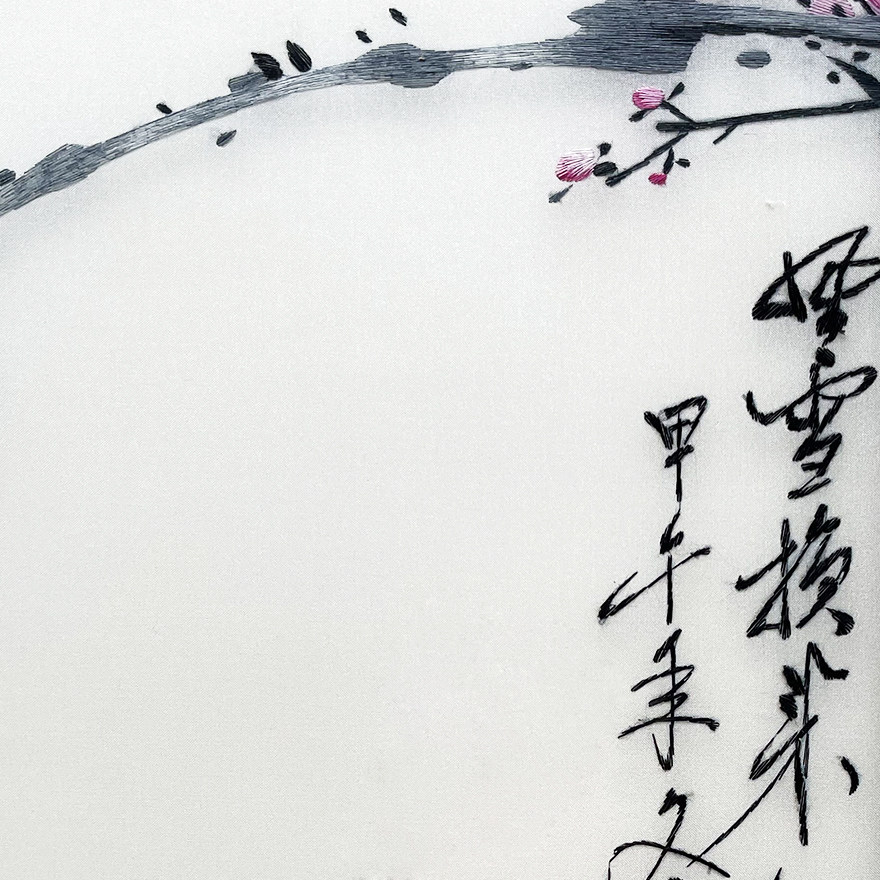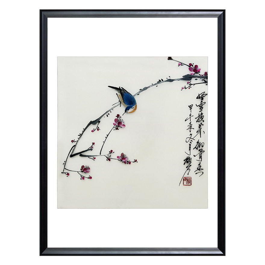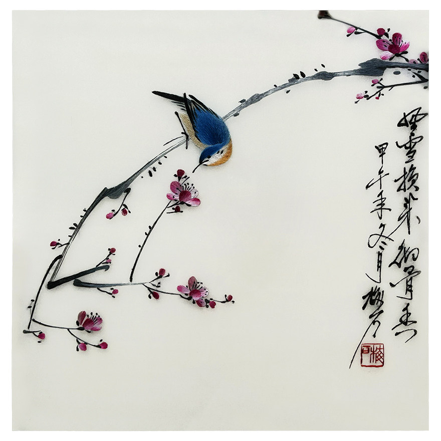 Artisan Su embroidery "Winter Moon Mei Heung" Home Residence Decoration Hanging Painting Embroidery Genuine Silk