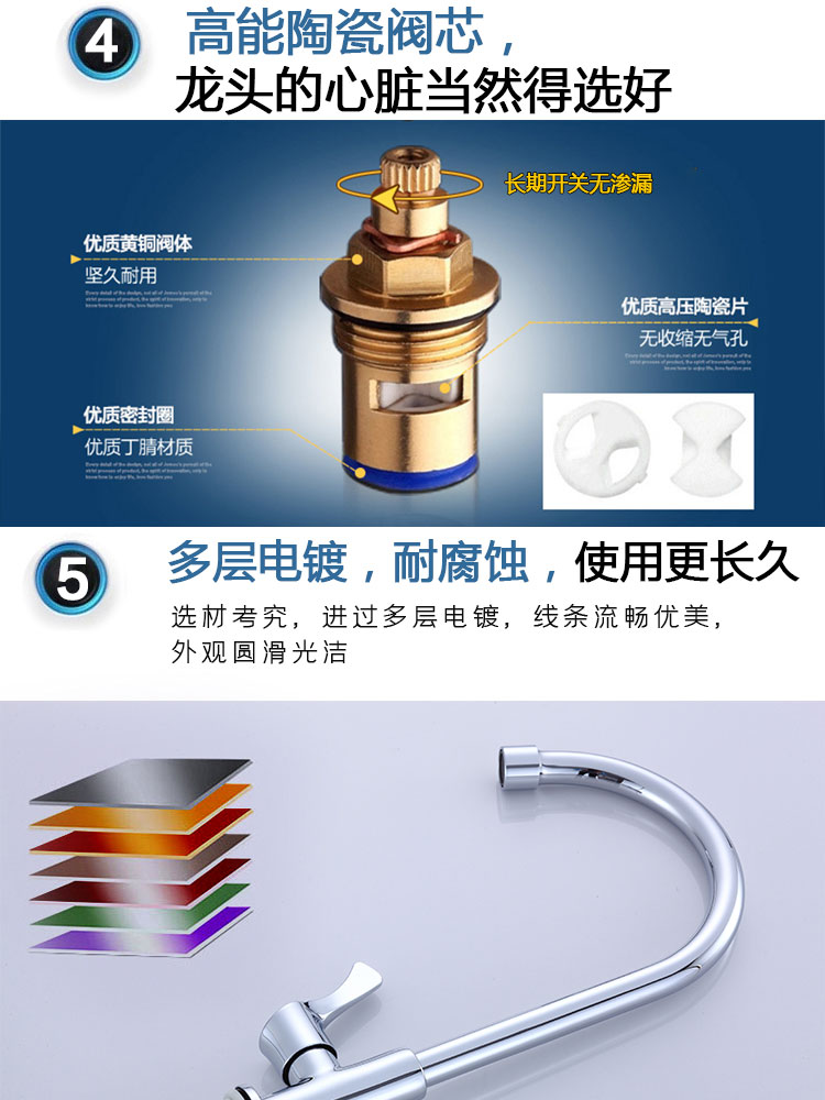 Elegant ♥ Single-cooled kitchen pepper double faucet ♥ Decade warranty classic _ hose _ corner valve thicker luxury ♥ single-cooled kitchen pepper double faucet ♥ decade warranty plus