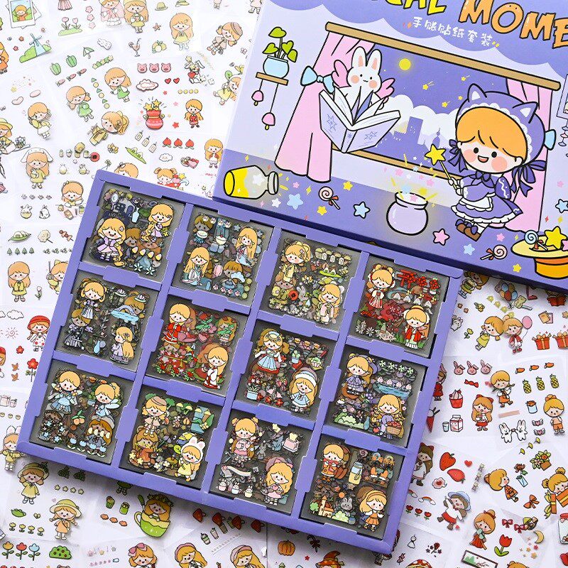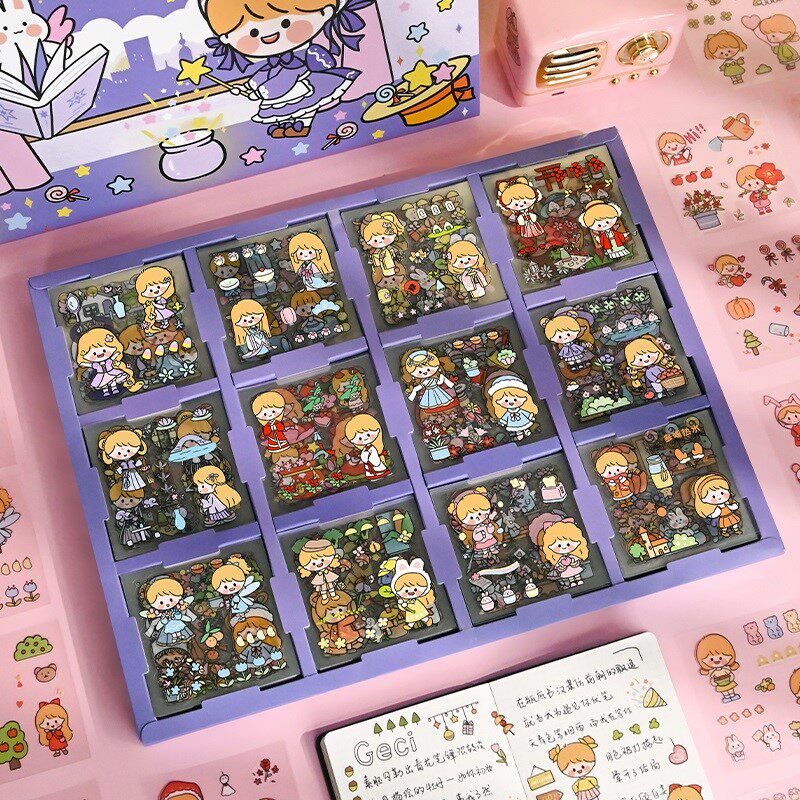 240 handbooks stickers suit waterproof no-mark water glasses hand ledger stickers decorate small patterns Cute Teenage Hearts Cartoon Characters Ins Wind Ledger material Cane Safety Helmet Mobile Phone Diy Sticker