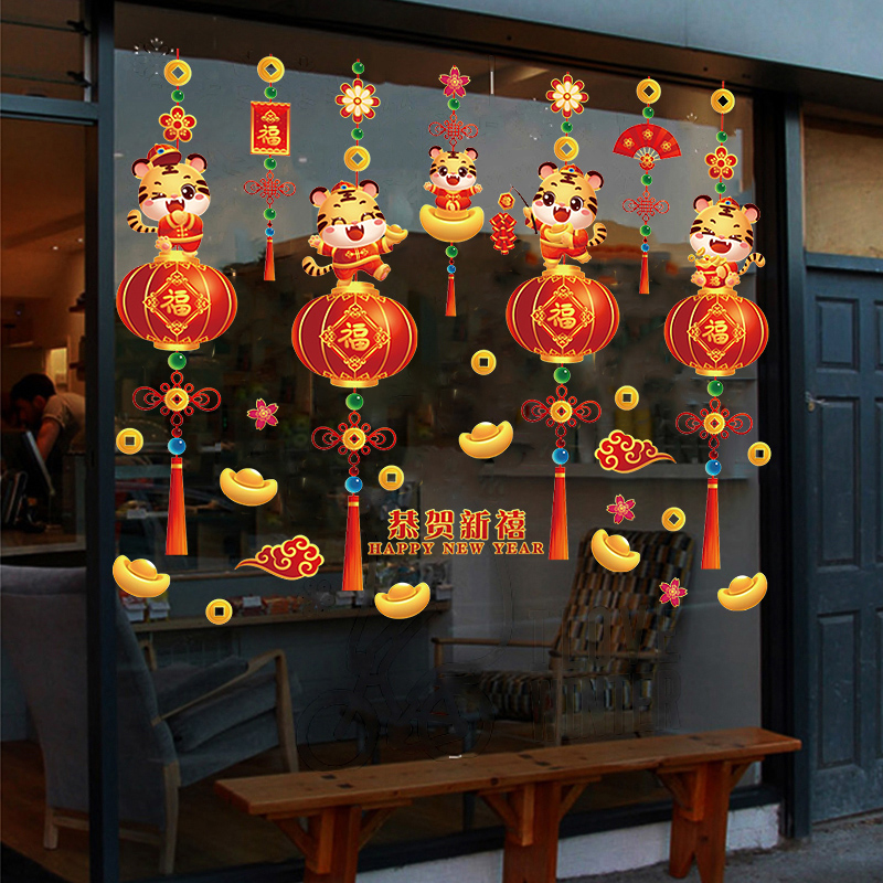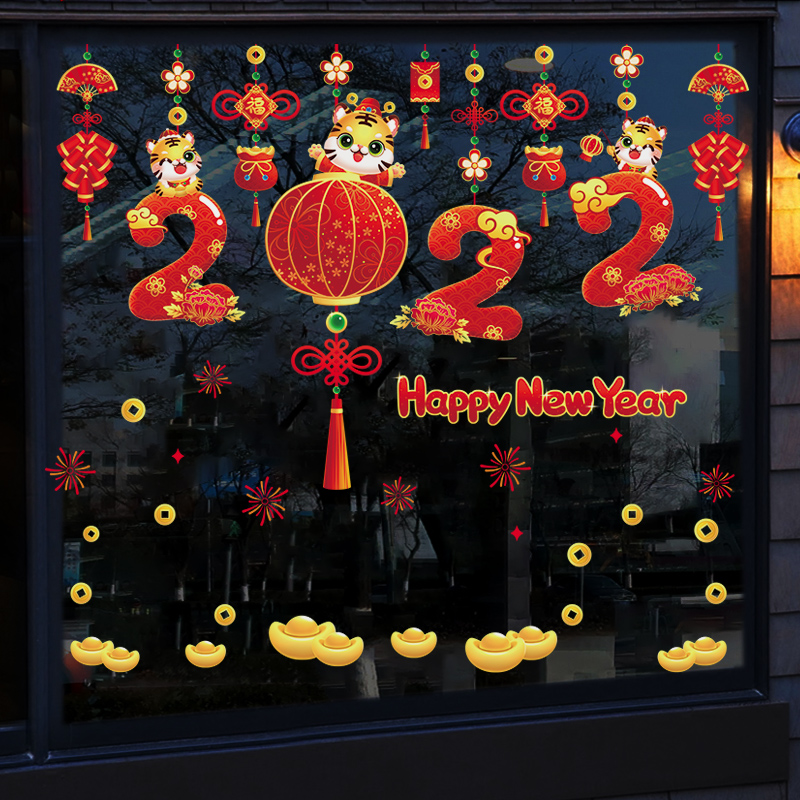 2022 Year of the Tiger Window, New Year Ornaments, Electrostatic Glass Door Stickers, Anti-collision Window Stickers, Spring Festival New Year Pictures, Wall Stickers