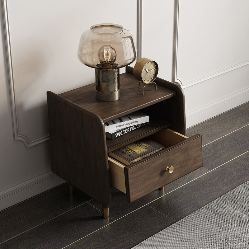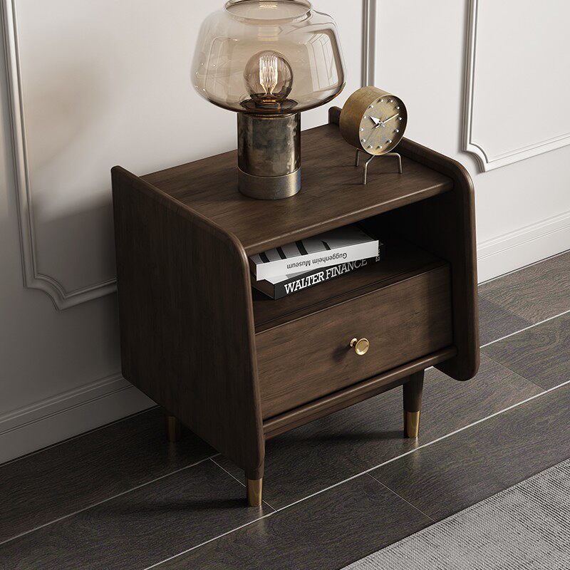 Medieval all solid wood bedside table simple bedside cabinet small bedroom retro wabi-sabi wind boxwood drawer storage cabinet