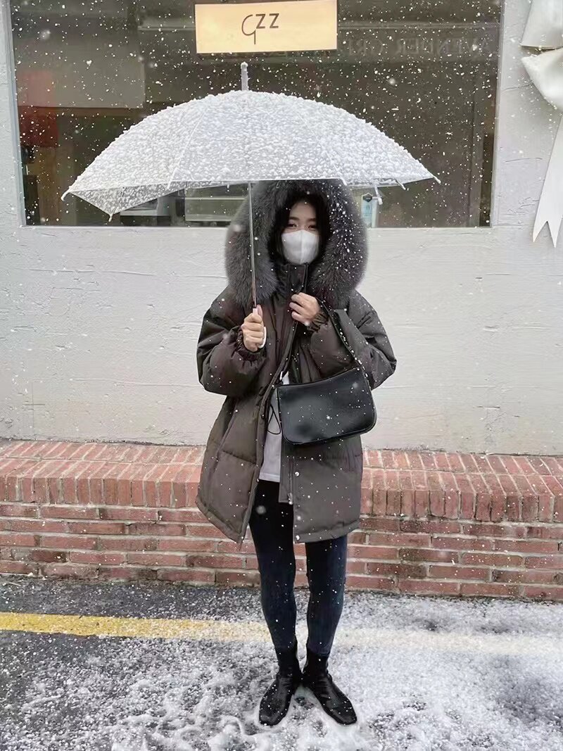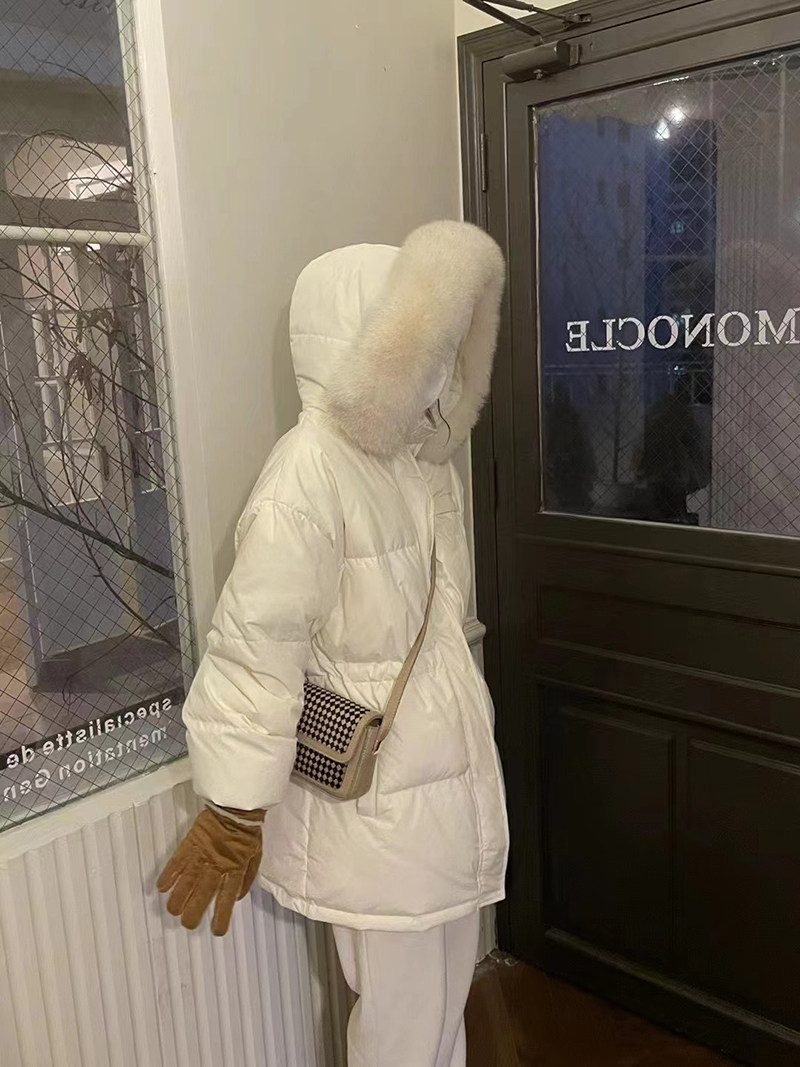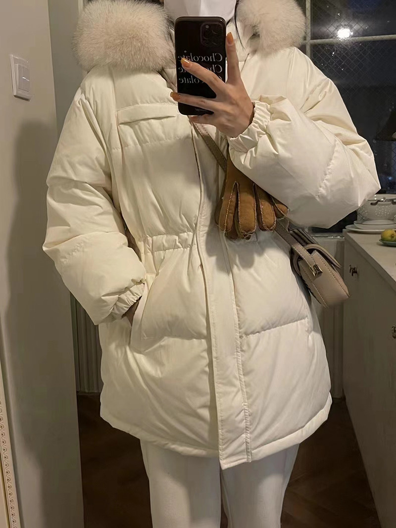 MIUSU Winter New Products College Winter College Wind - Grey Fox collar 90 white duck - duvet dark gray plume feather coat