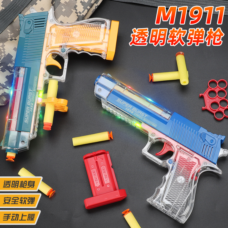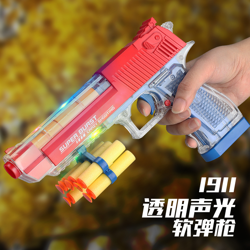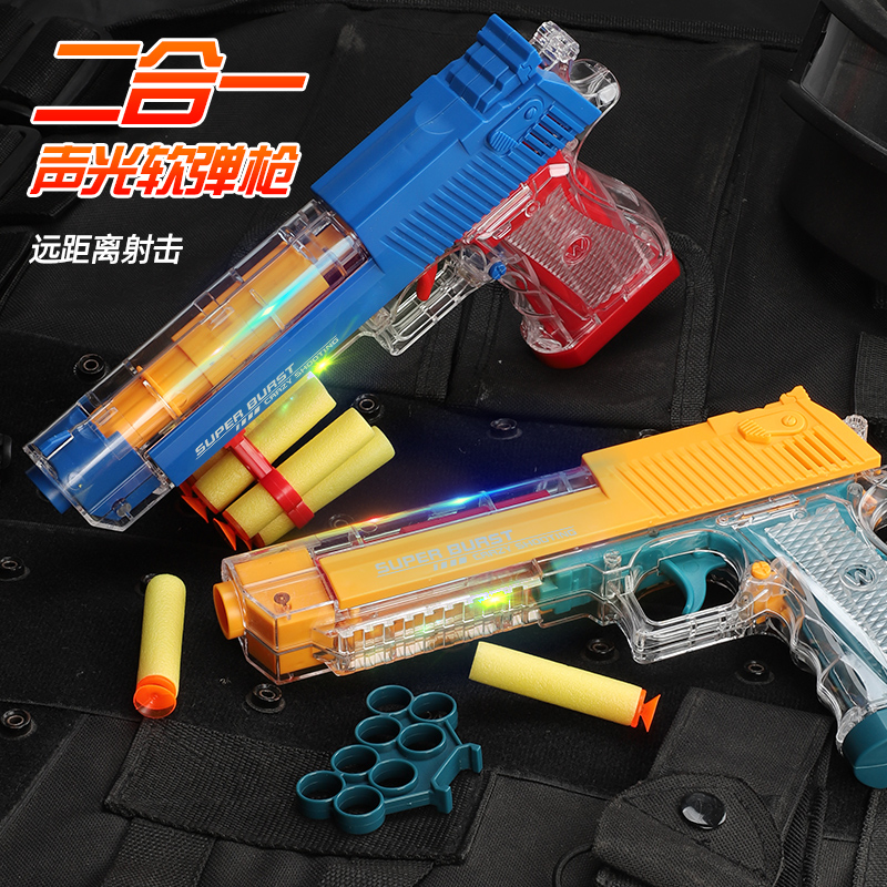 (Revolver) Water Gun Soft Ammo 2-in-1 Sound and Light Soft Ammo Pistol-Red and Blue Random-With Battery Sound and Light Soft Ammo Pistol-Yellow Green Random-With Battery