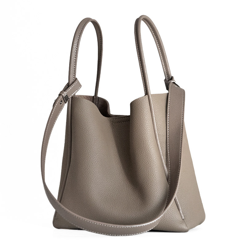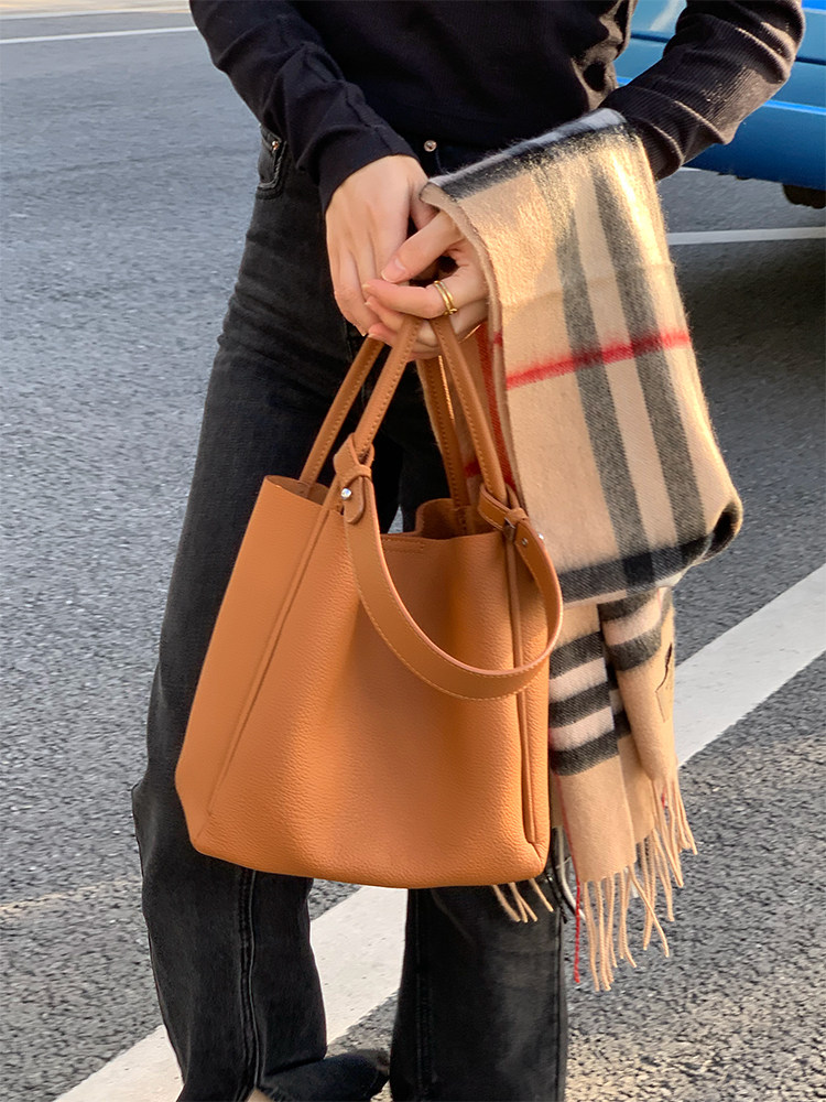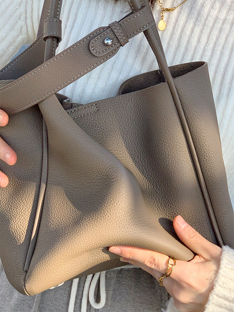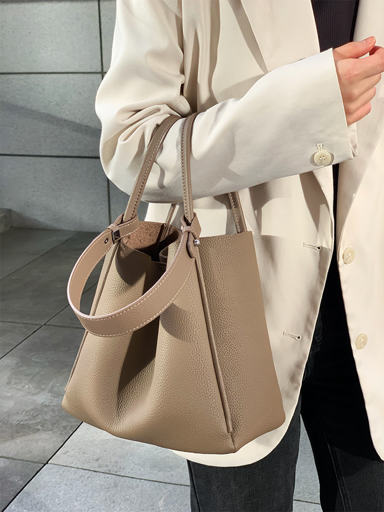 High-end casual one-shoulder bucket bag head layer cowhide vegetable basket soft leather hand bag very simple child mother underarm bag