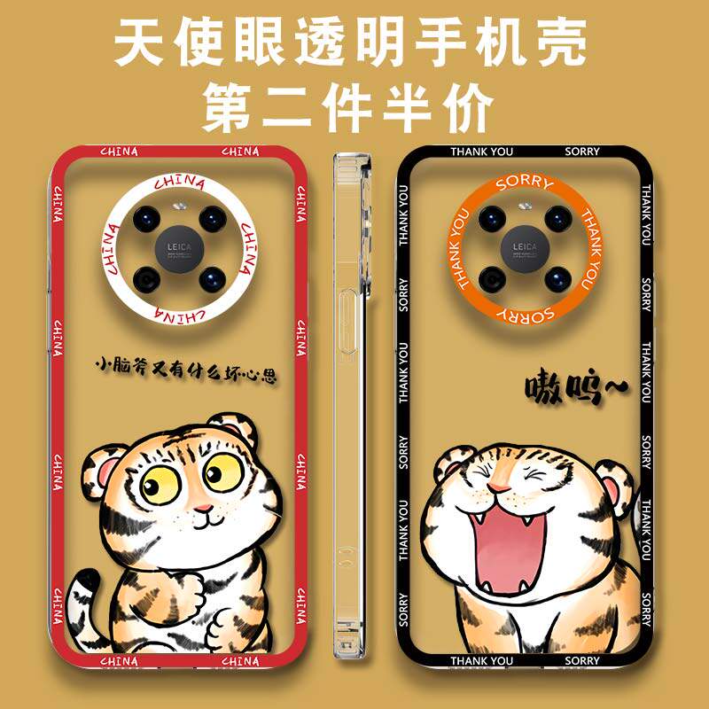 Cute little tiger suitable for Huawei mate40pro transparent mobile phone protection shell cartoon Little fat cute tiger baby Phantom m40pro New Year mete40pro Brain Axe Lens Full Package