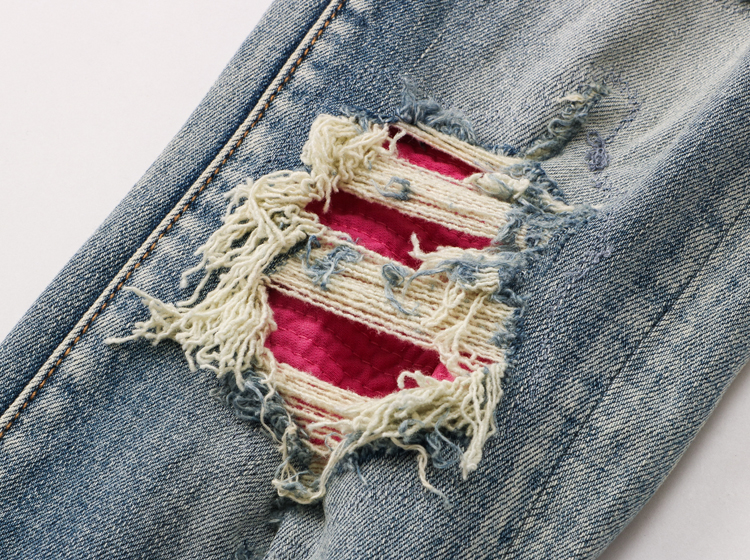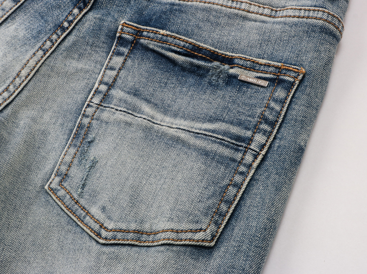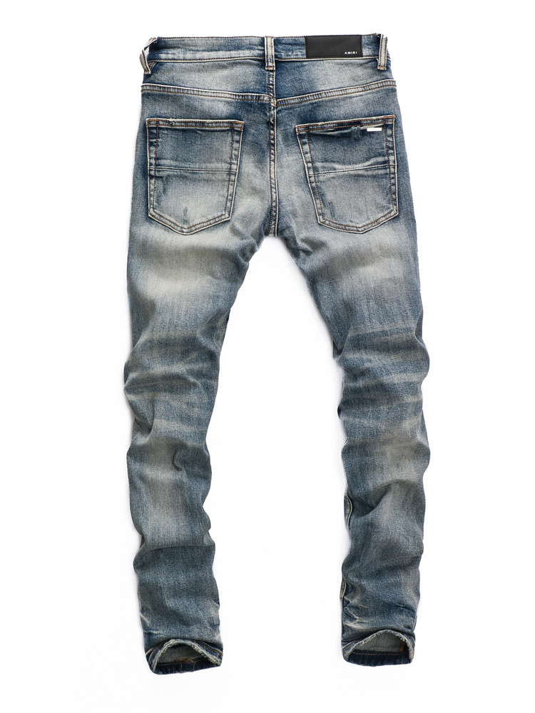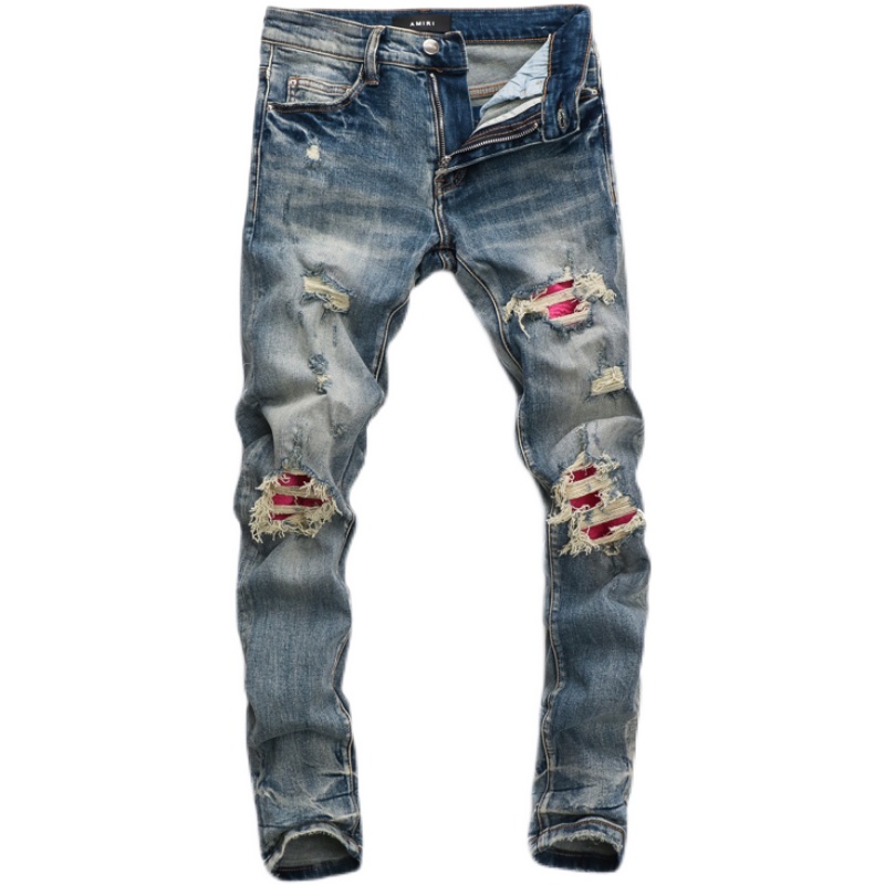 High End Breaking Hole Jeans Man's Tide Cards Retro Little Feet Light Color Trend European Station Amiri Denim Pants Man
