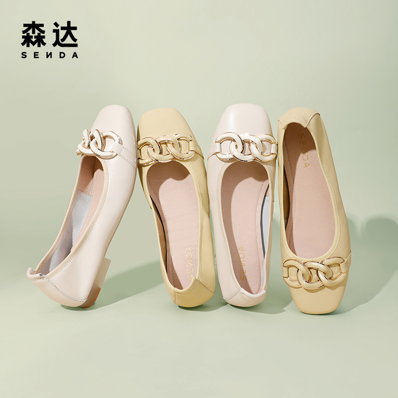 Senda 2022 spring and autumn new shopping malls with the same temperament commuting comfortable flat-heeled female grandma shoes single shoes 3BS01AQ2