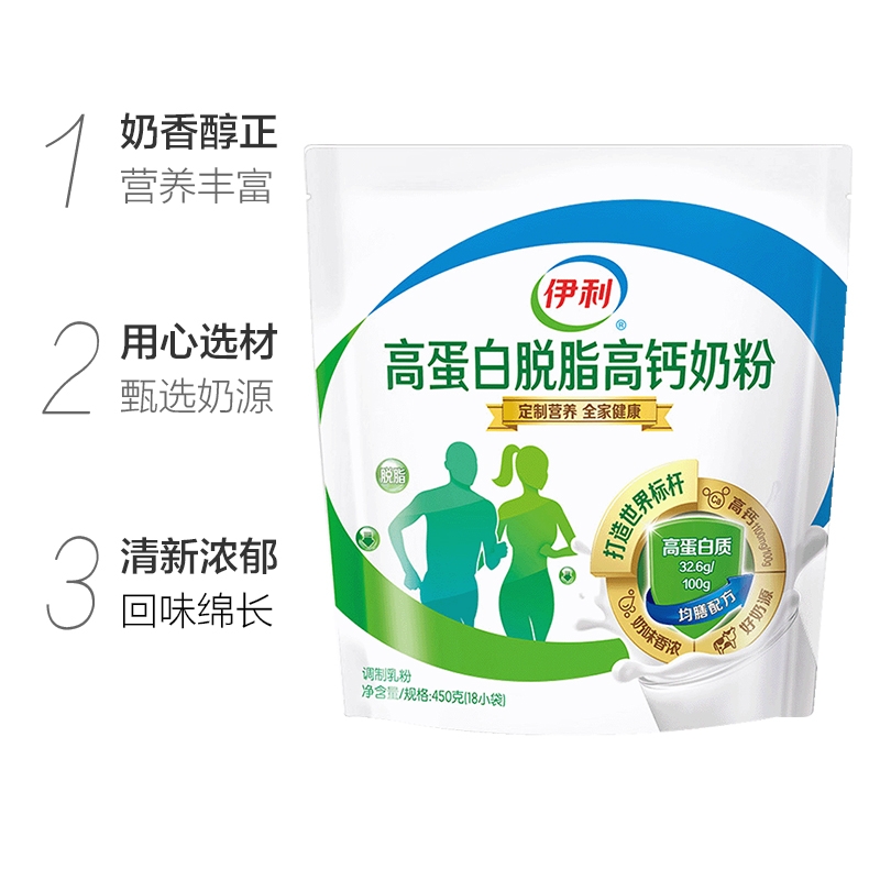 Yili high-protein skimmed high-calcium milk powder adult adult milk powder 450g x 1 bag breakfast independent small bag
