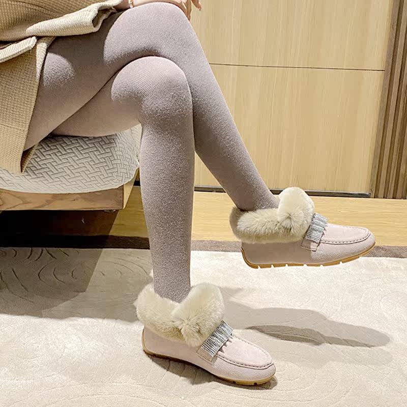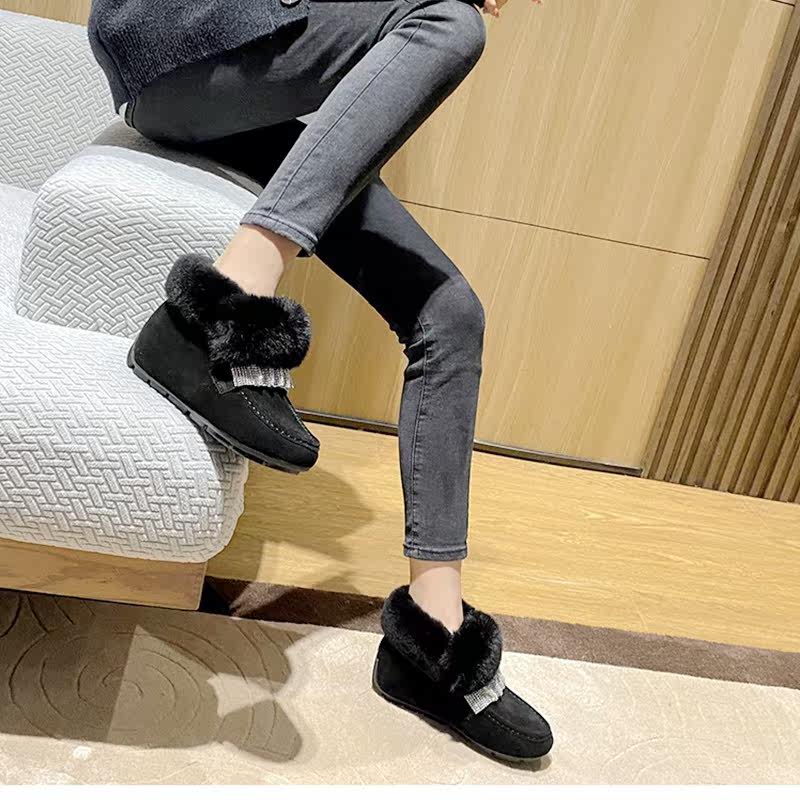 Real leather water drill snow ground boots female inner heightening upper foot slim anti-slip flat bottom plus suede rabbit hair bean shoes