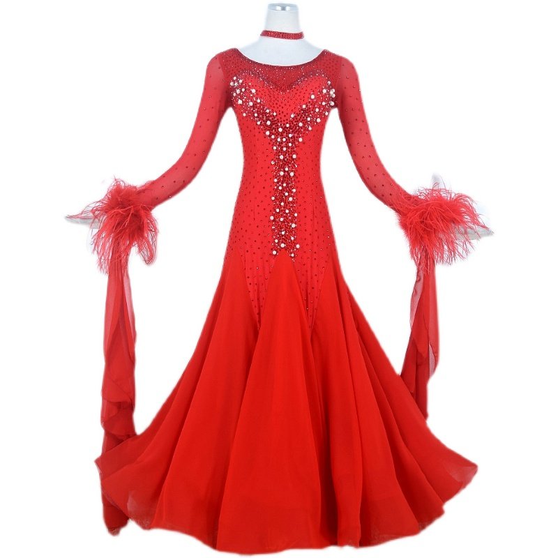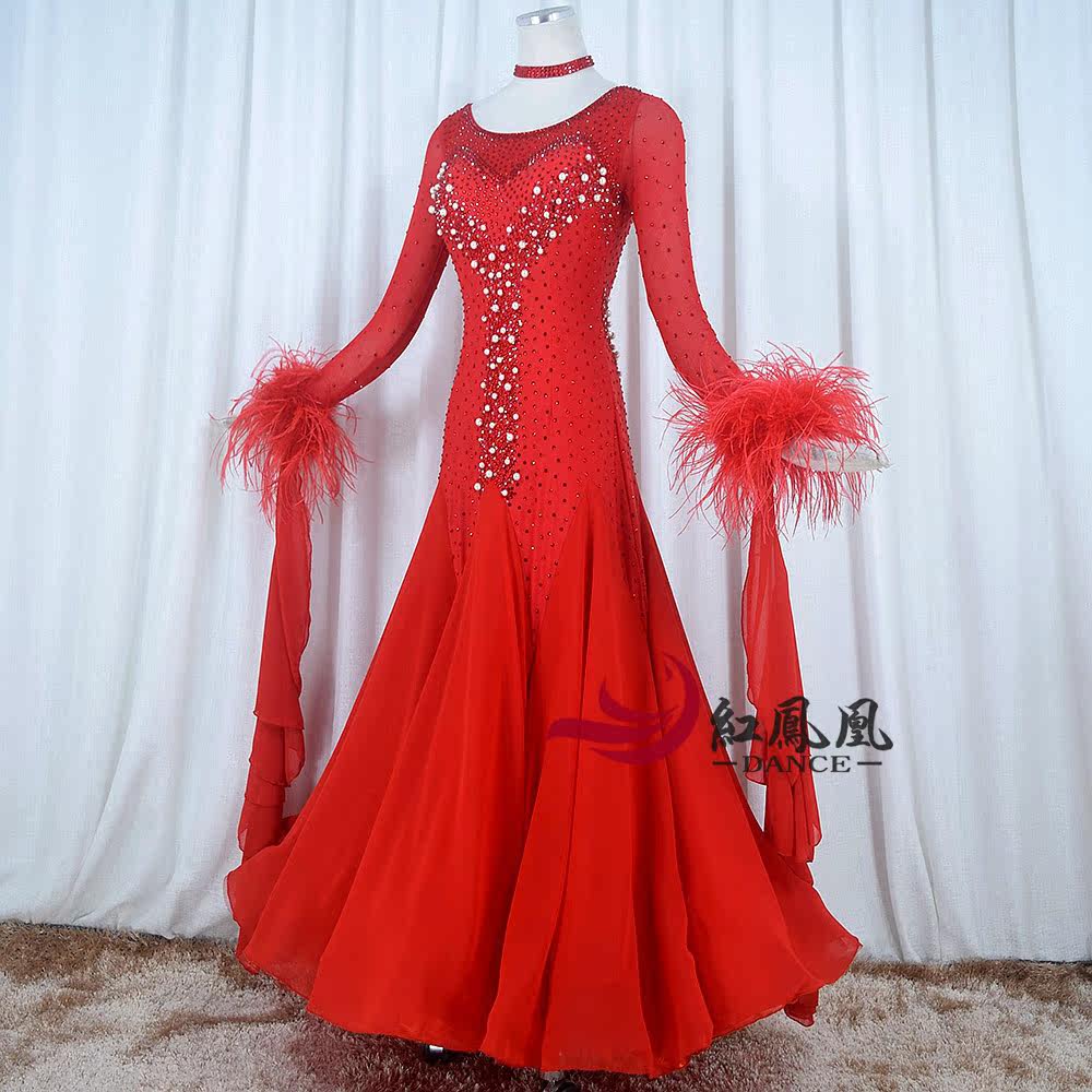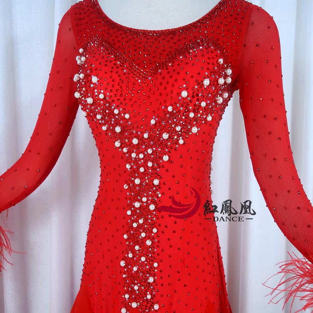 Red Phoenix New Morden Dance Dress Rehearsal Dress Waltz Tango Dance Dress Grand Pendulum Professional Custom 1024