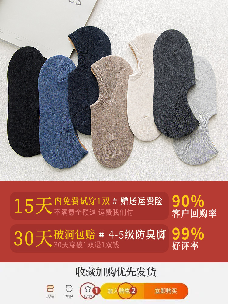 Boat socks men's short socks large size boat socks men's 45 yards deodorant and sweat-absorbing summer invisible silicone non-slip non-falling with RR