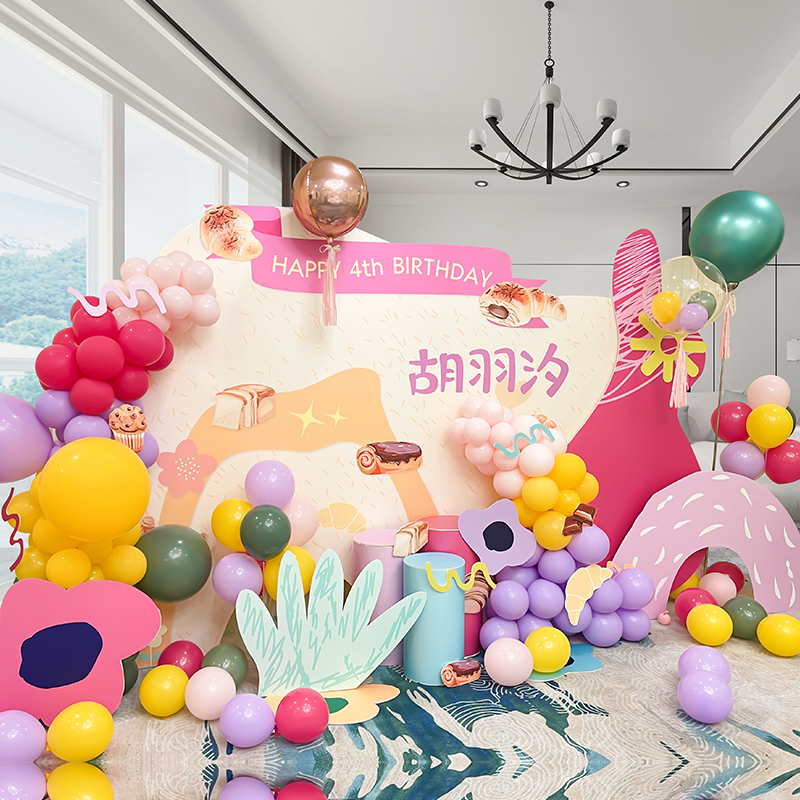 Girl's birthday Placement INS hand-painted illustrator Wind balloon decoration Scene Custom background plate Package full moon