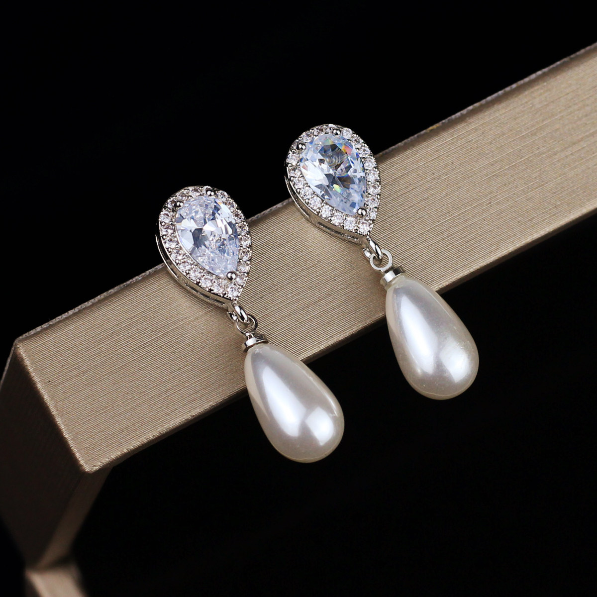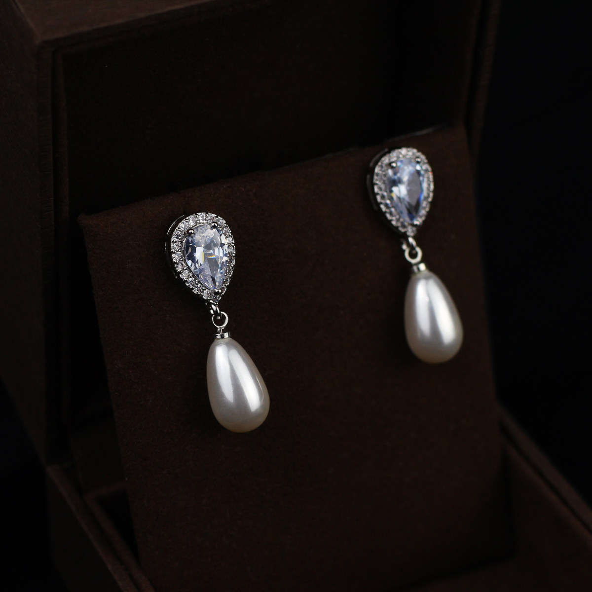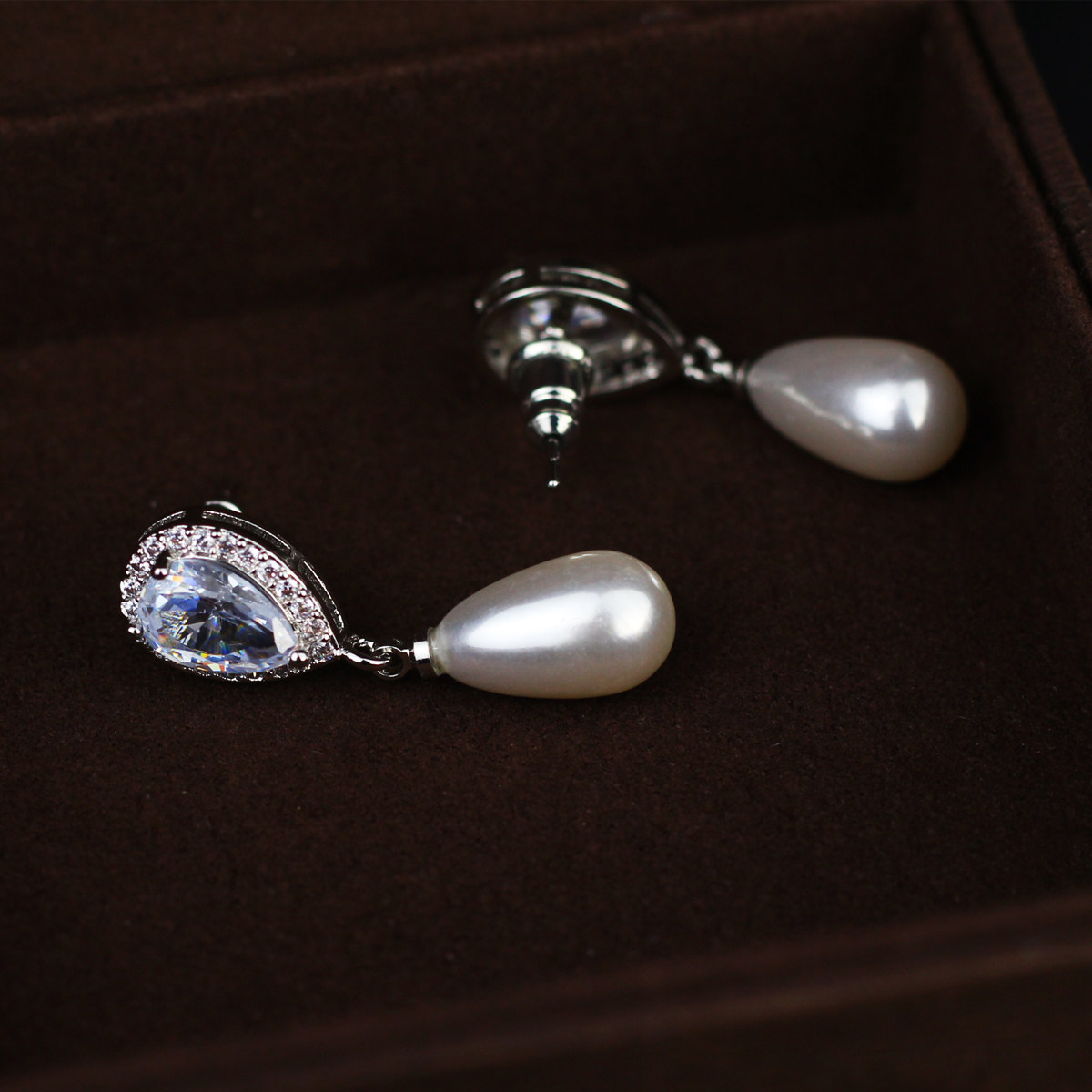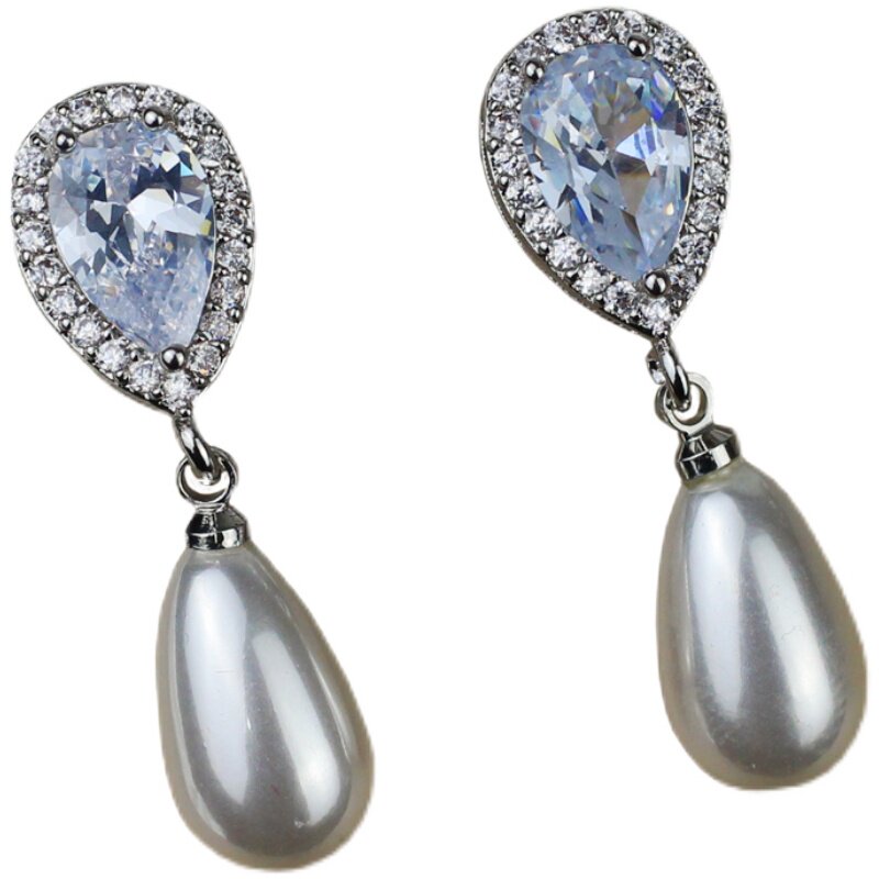 Brief Water Drop Zircon Pearl Earrings Japan-South Korea Fashion Personality Long Version Silver Tinder Wedding Dresses Wedding Dresses Accessories Women