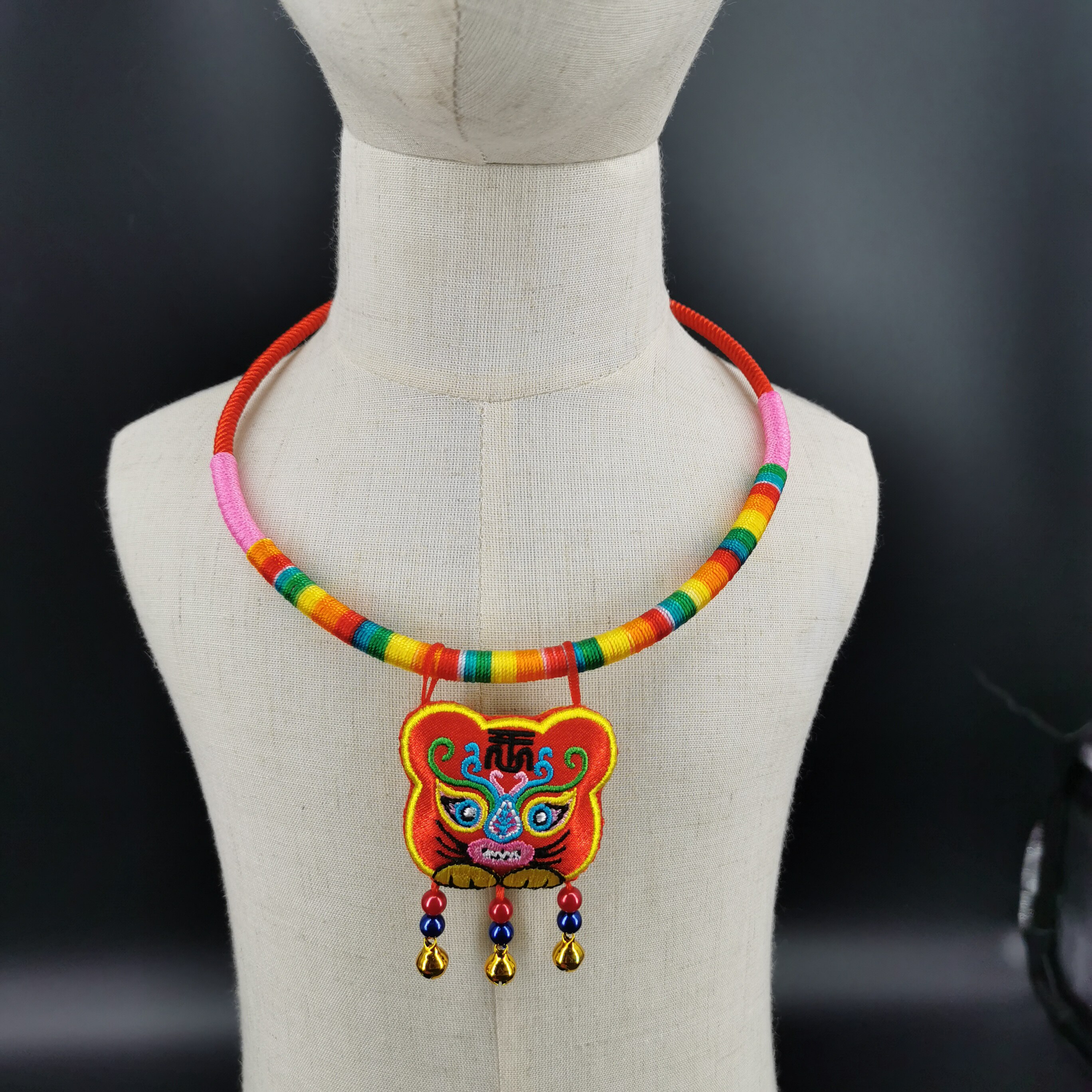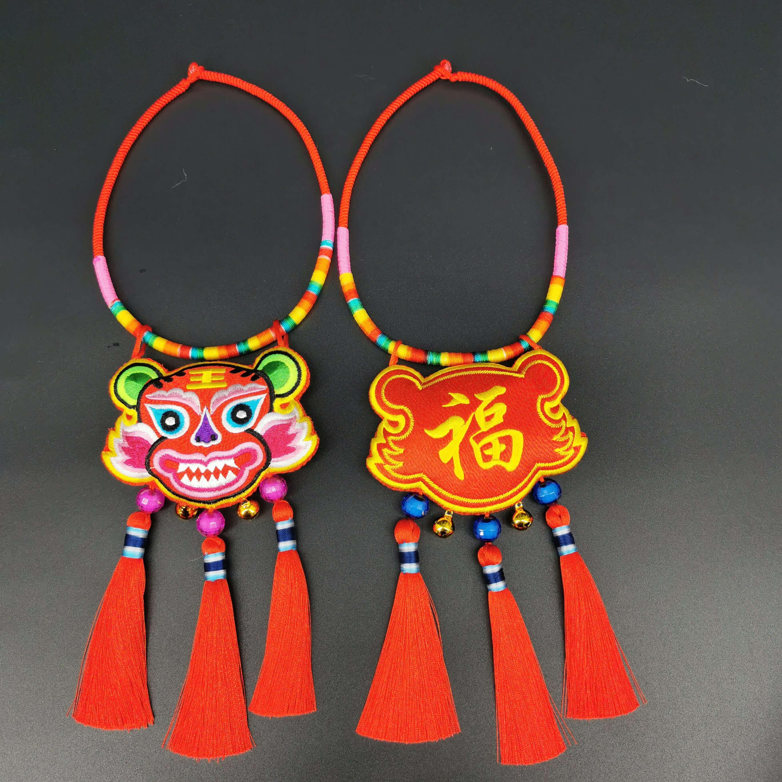 Embroidery new other red rope Item Circle 100 days Catch Weekly Baby Full Moon Necklace Pendant Old Tiger Head Child