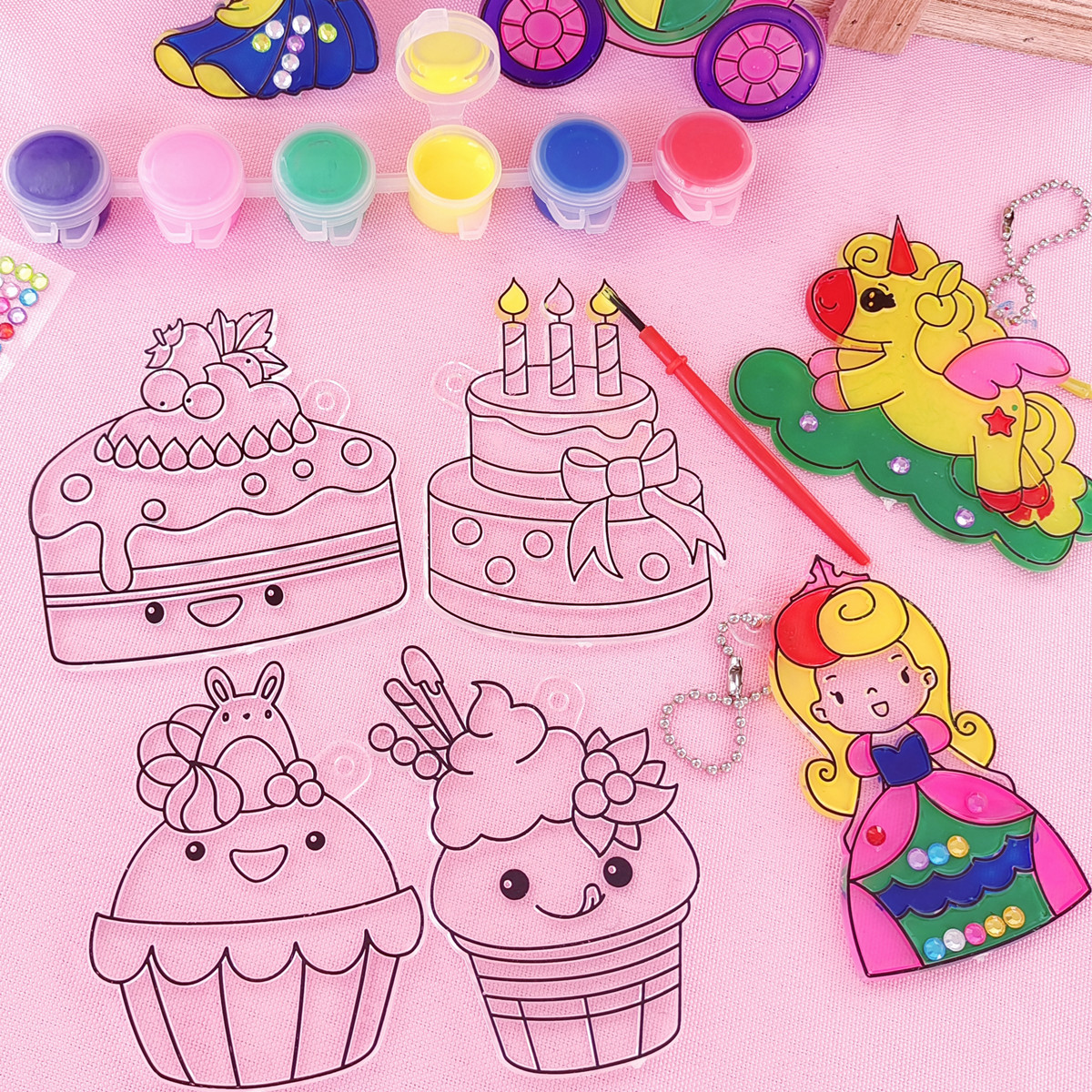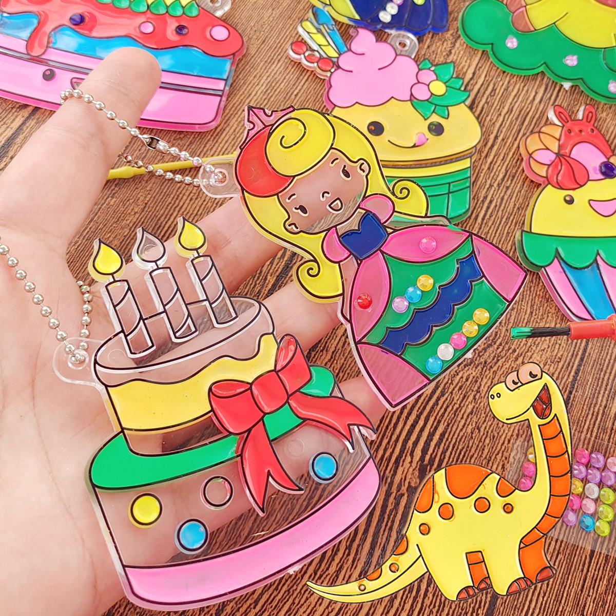 Children light transmission colour drawing Painted Glue Painting Paint Diy Hand Puzzle Watercolor Painting Key Necklace color graffiti Painting Toy