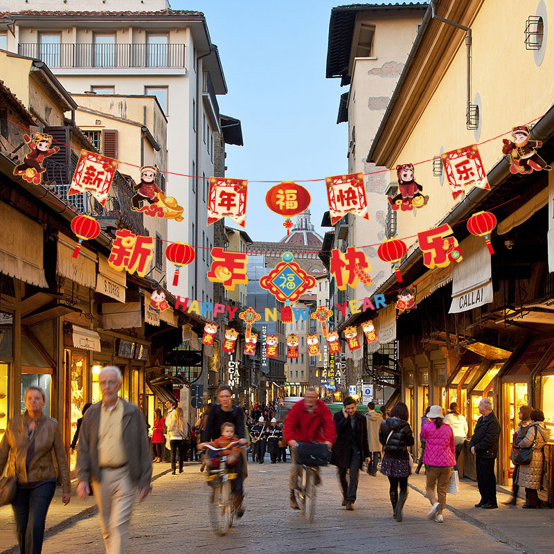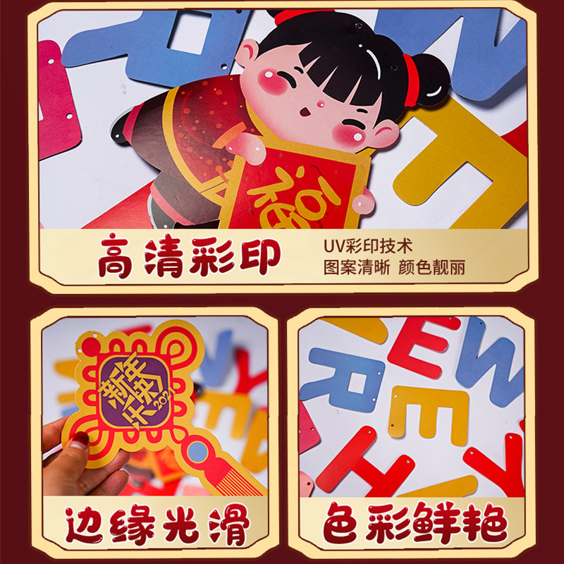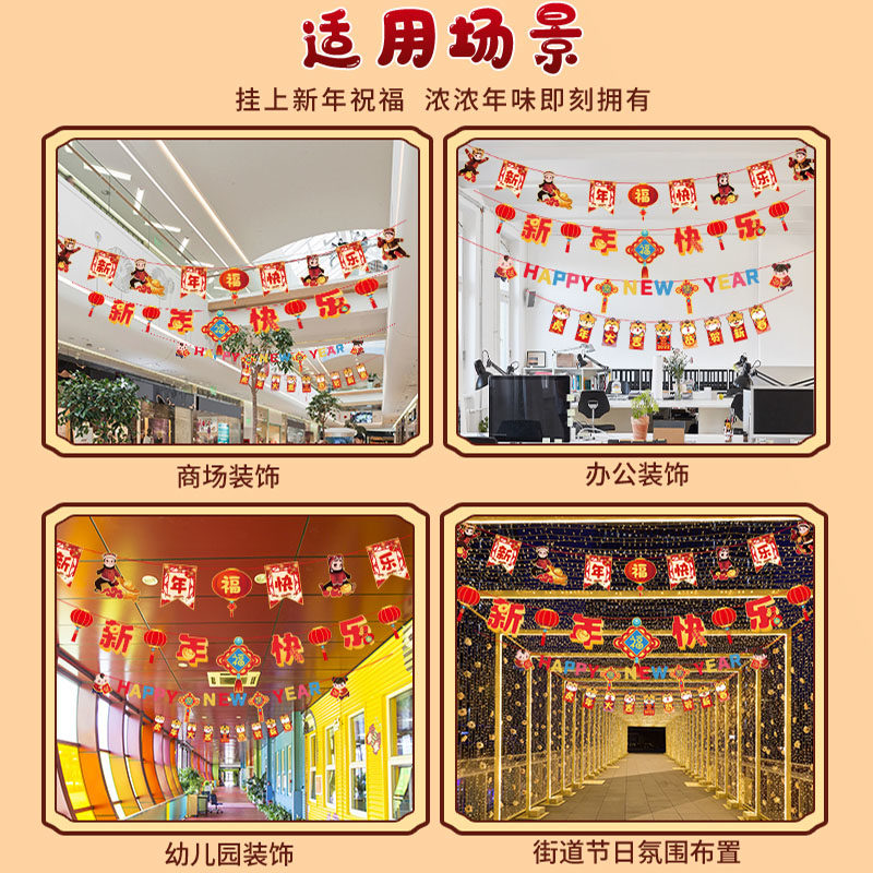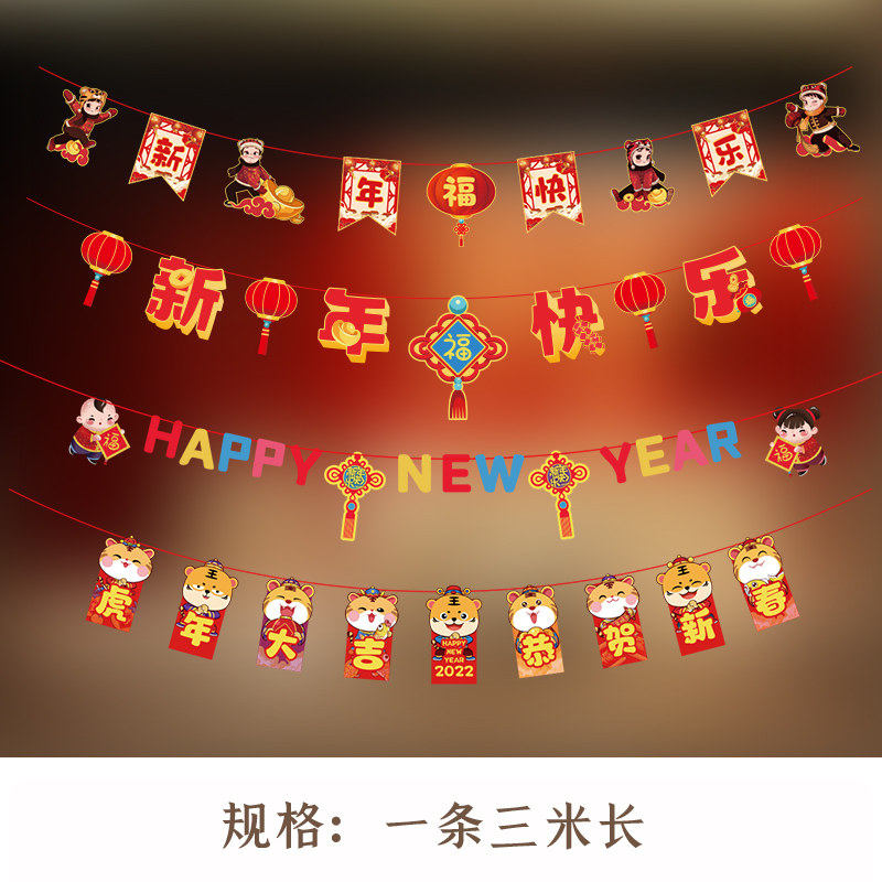 New New Fine Art New Year Decorations Laflower Triangle Banner Ribbon 4 strips of Spring Festival Festive Flags Strings of the Spring Festival Flag-Taobao