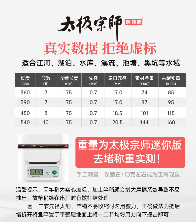 Taiji Zongshi Mini version (stream rod) 3 6 m Tai Chi Zongshi Mini version (stream rod) 3 9 m Tai Chi Zongshi Mini version (stream rod) 4 5 m Tai Chi Pontian Division Mini Edition (stream rod)