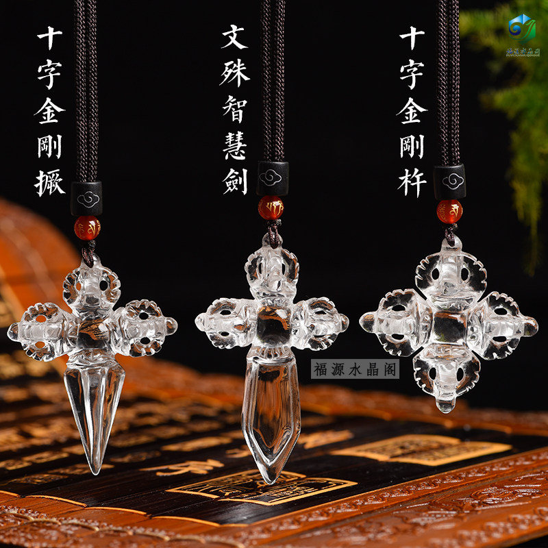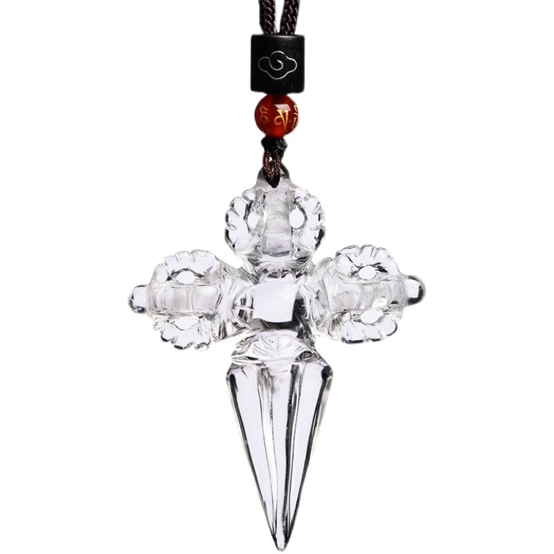 Natural white crystal cross vajra pendant vajra drop magic pestle Manjusri wisdom sword national wind method pendant