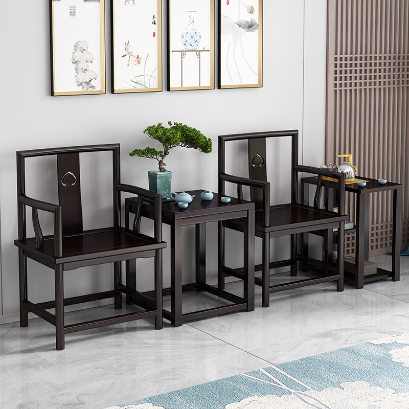 Solid wood surround chair three-piece set Chinese-style round chair living room with stove Taishi chair home single leisure chair tea table combination