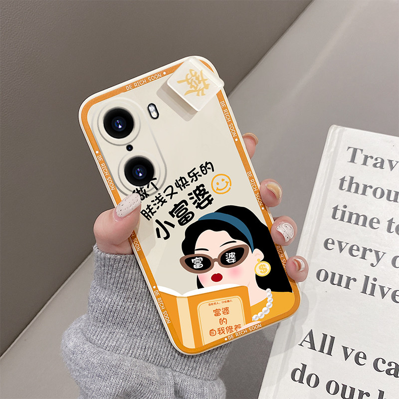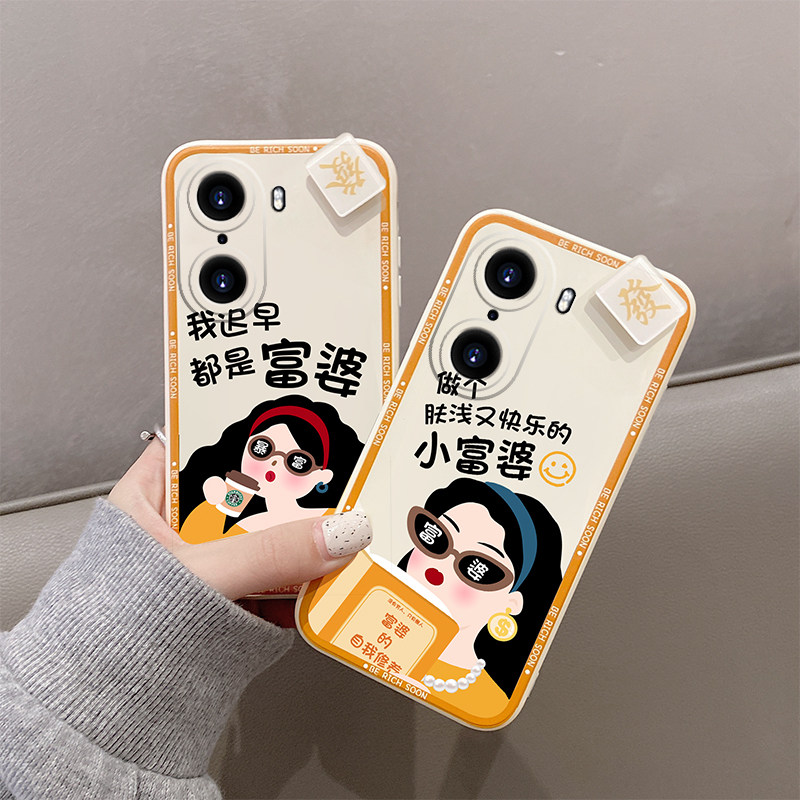 Huawei Honor 60 Mobile phone protective shell You'll all be rich sooner or later All the new glory 60pro Women's Liquid Silicone Full Package Anti-Fall New Product Advanced Curved Screen Personality Creative Frosted Ultrathin Cartoon Tide