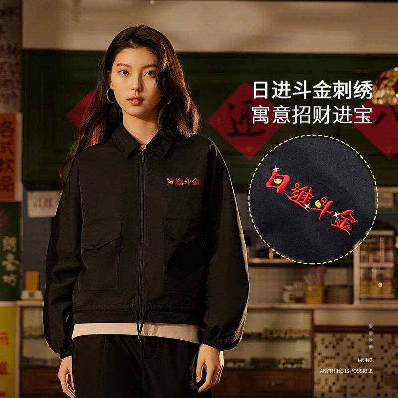 China Li Ning Day into the Golden jacket Woman's Tiger Year 2022 New Year's New Year's Eve family plus suede jacket AFDS092-1