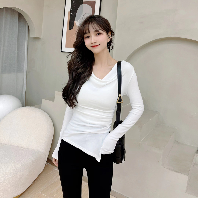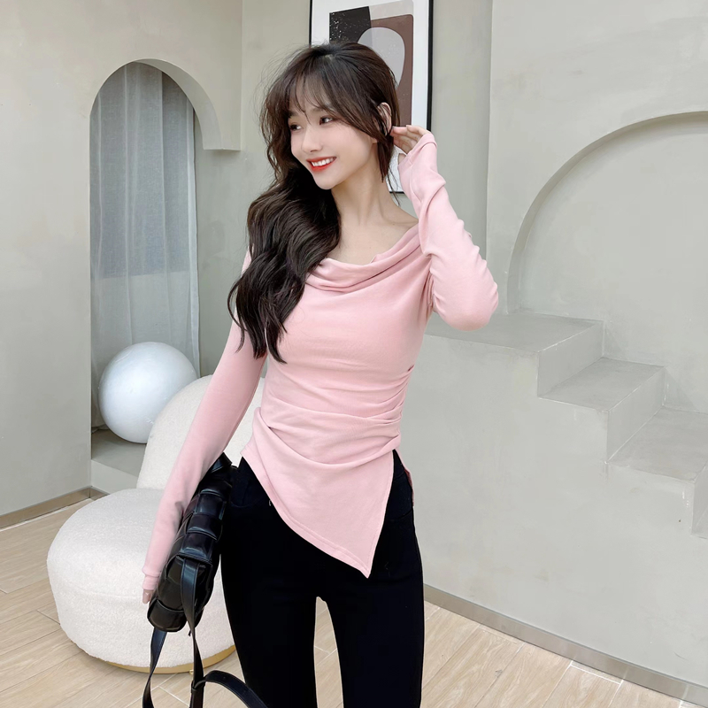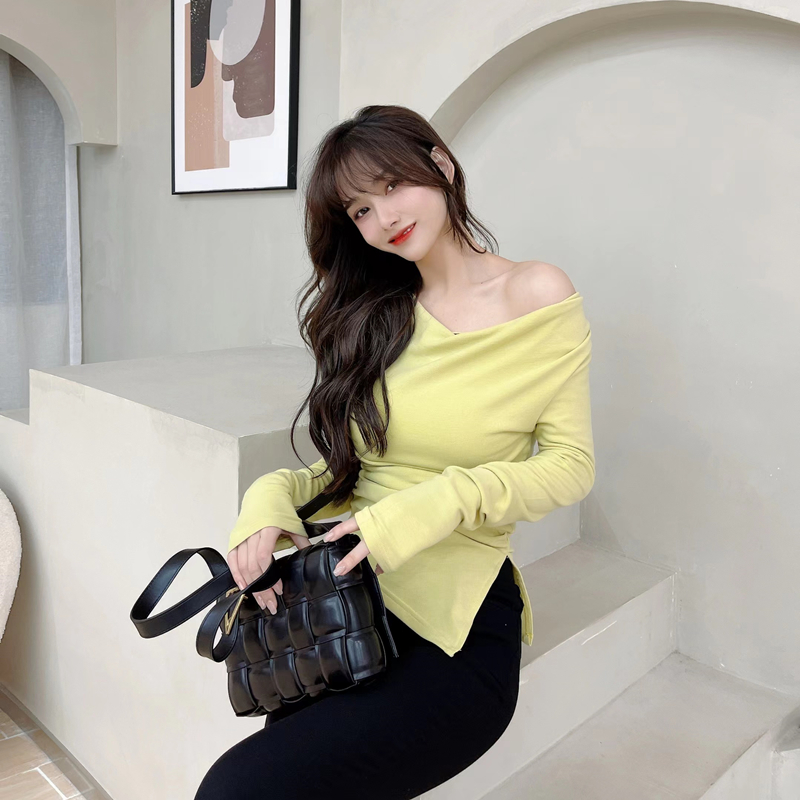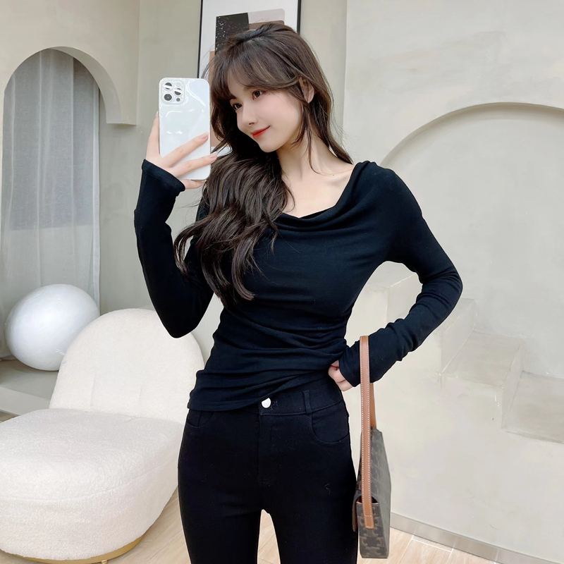 Kaka women's official flagship pure-lust word long sleeve T-shirt early autumn and beat the bottom coat