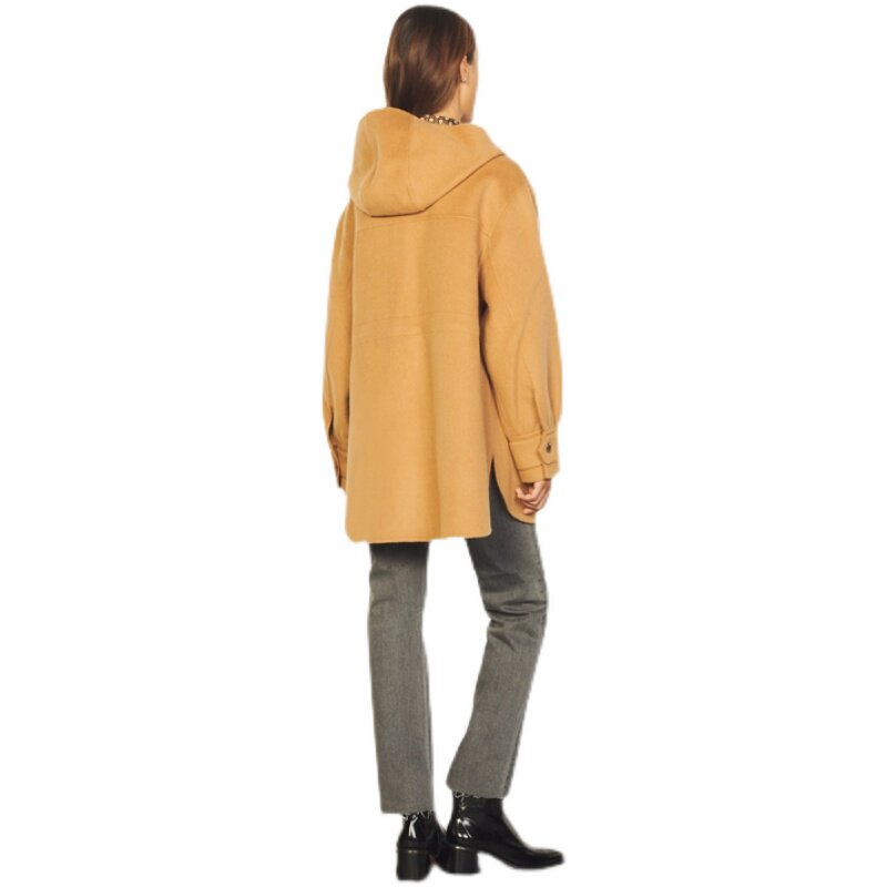 SANDRO draw rope bunches waist even cap in long version wool coat jacket 21 autumn and winter women SFPOU00375