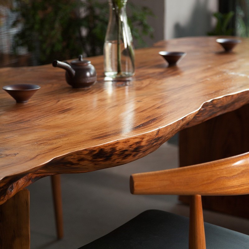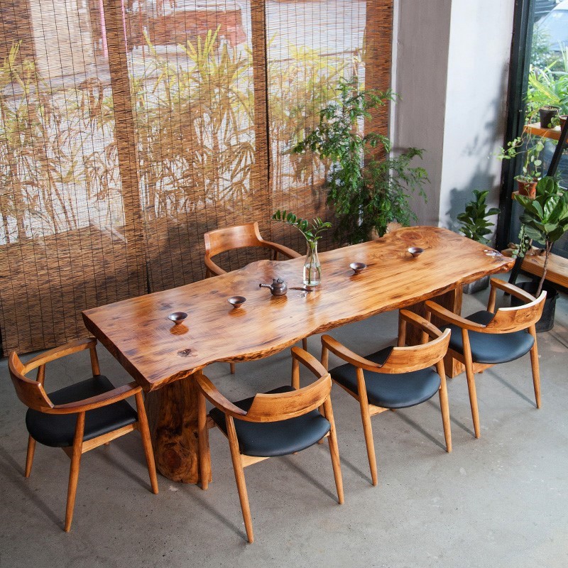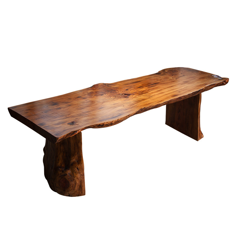Solid Wood Retro Natural Side Log Kung Fu Tea Table Chairs Table Meeting Table Owner Office Large Board Strip Table Composition