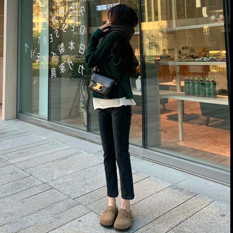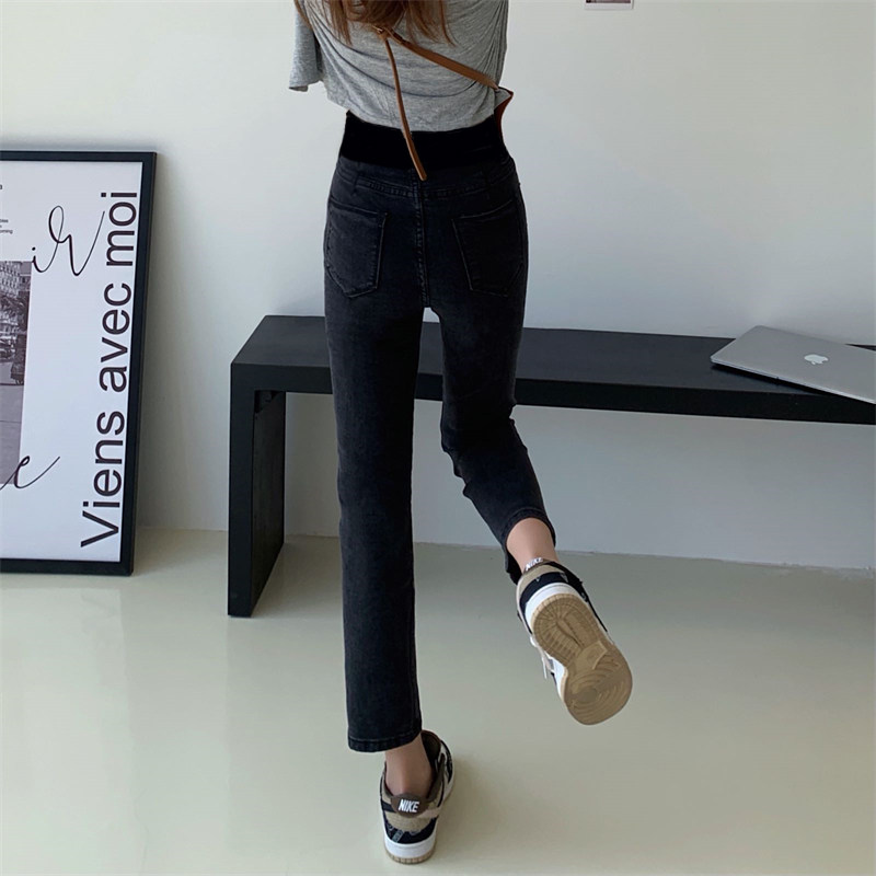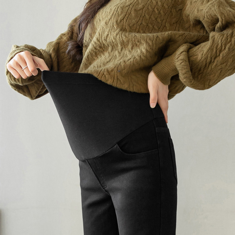 Maternity pants winter plus velvet thick outer wear autumn and winter 2021 new spring and autumn small straight jeans winter clothes