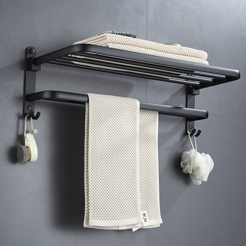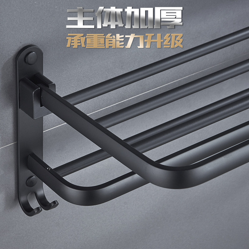 Bathroom rack wall-mounted towel rack black punch-free bath towel rack toilet toilet toilet shelf