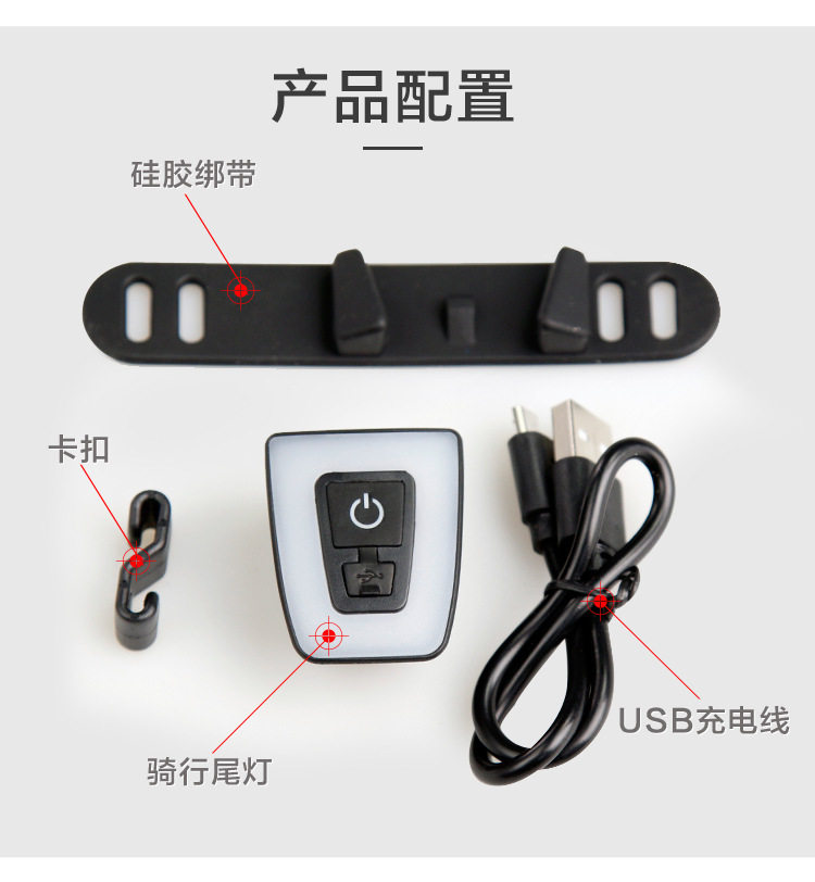 Bicycle tail light USB charging tail light bike bike climbing bike warning lights at night riding tail light running horse light