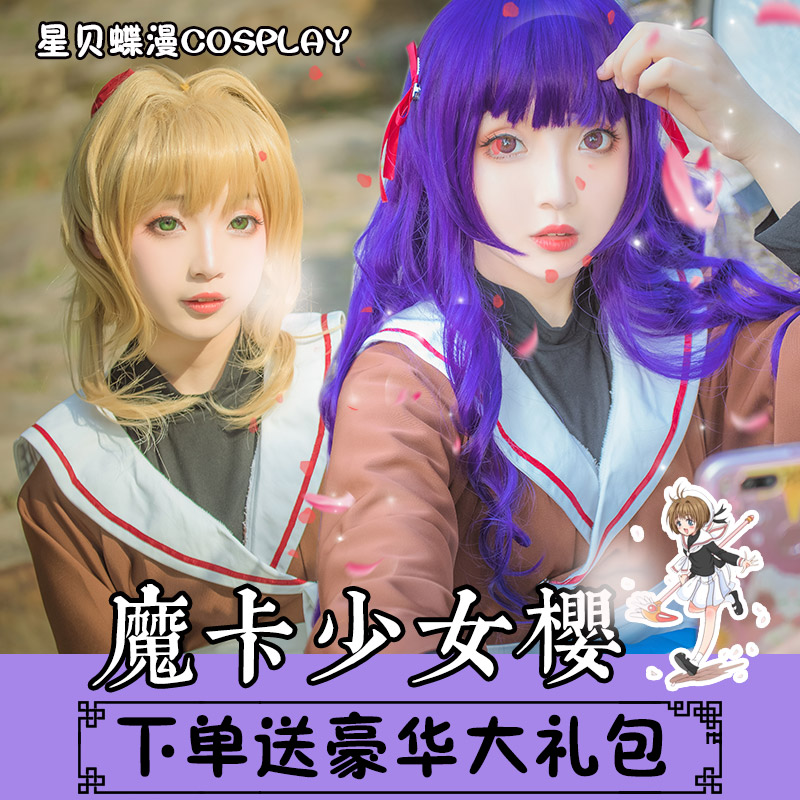 Cardcaptor Sakura cos kimono Kinomoto Sakura cosplay full set of anime loli women's man exhibition wig shoes