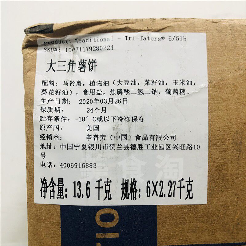 Large triangular potato cake (2 27kg * 6 packs of boxes)