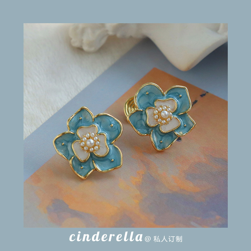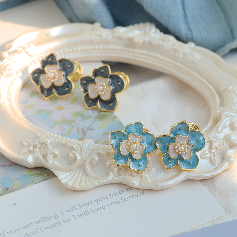 "Afternoon Garden" retro style Flowers Earrings Superior PEARL MOSQUITO COIL Mosquito Coil Ear Clip Woman without earbuds earrings