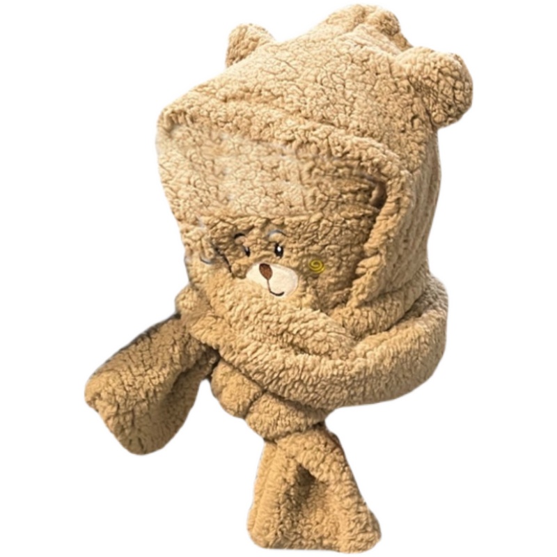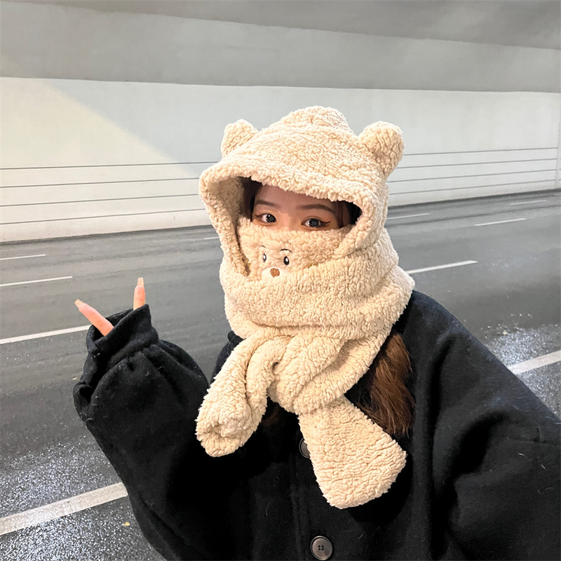 Bear Mask Hat Scarf One Female Winter Cute Plush Thickened Warm Cycling Windproof Earmuffs Lei Feng Hat