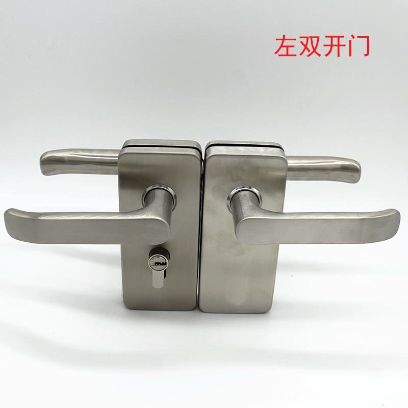 304 stainless steel square vertical lock office High partition ground spring door bathroom clamp door glass door lock with handle