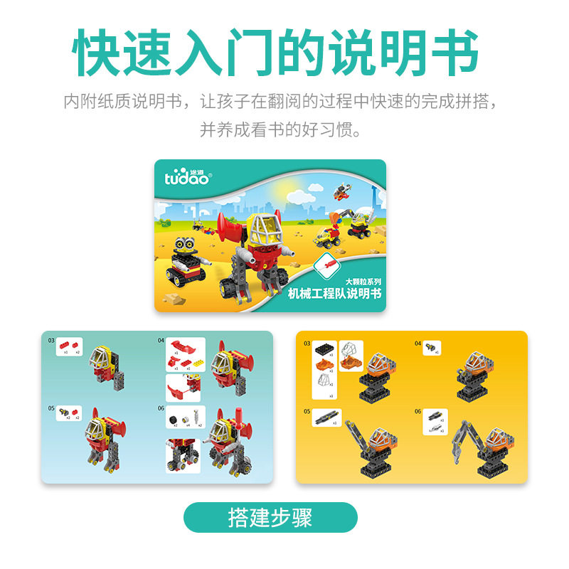 The road channel (Tudao) Mechanical engineering team big grain building blocks parable to teach the fun and play law variety of puzzle pieces