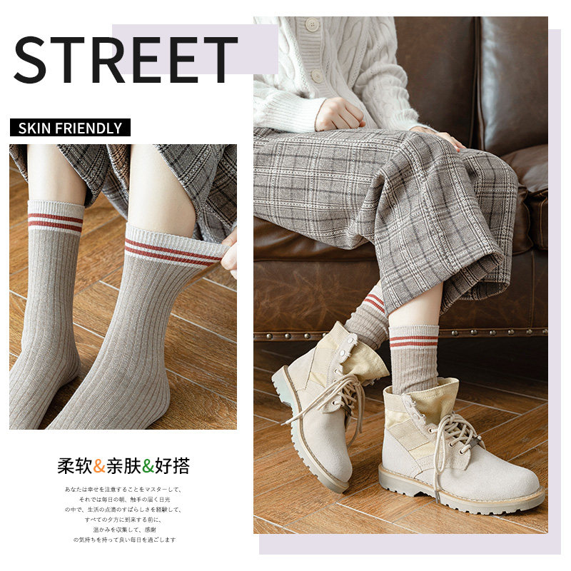 Zhuji socks ladies autumn and winter Japanese striped net red drum stockings in socks tide