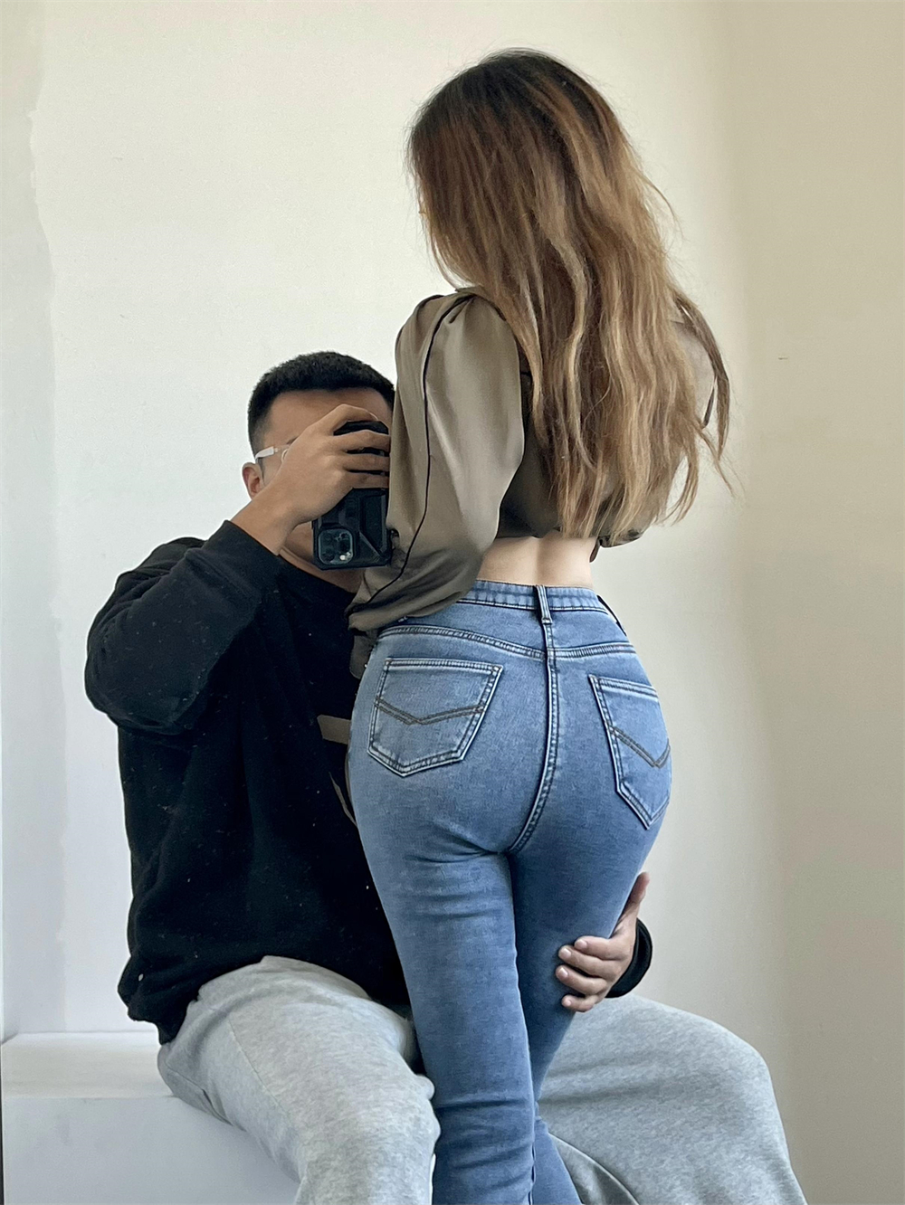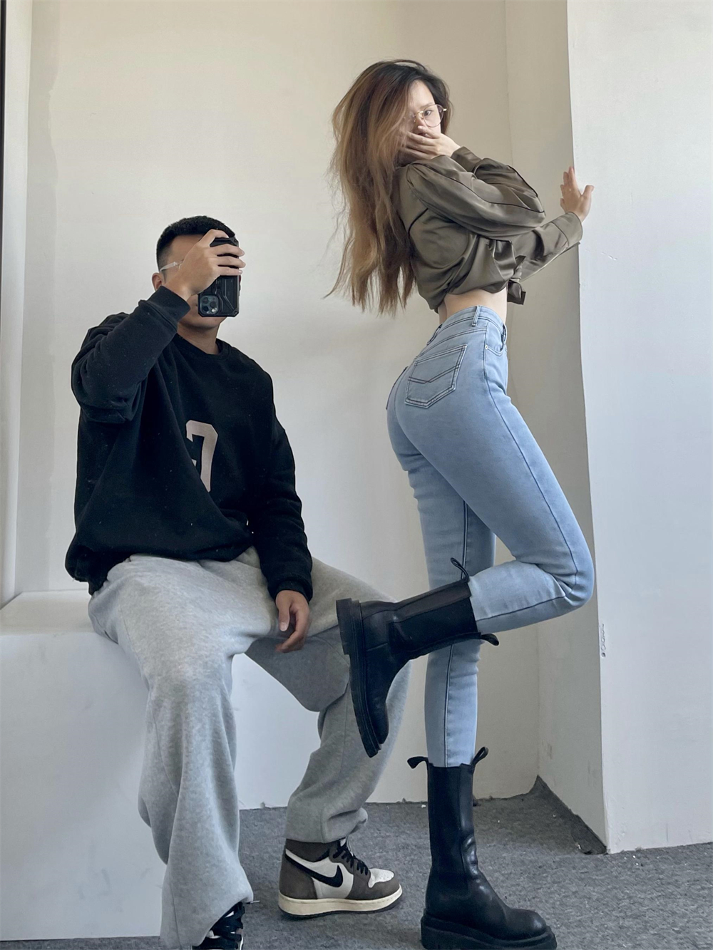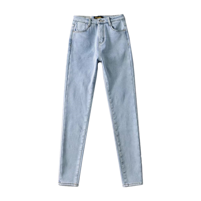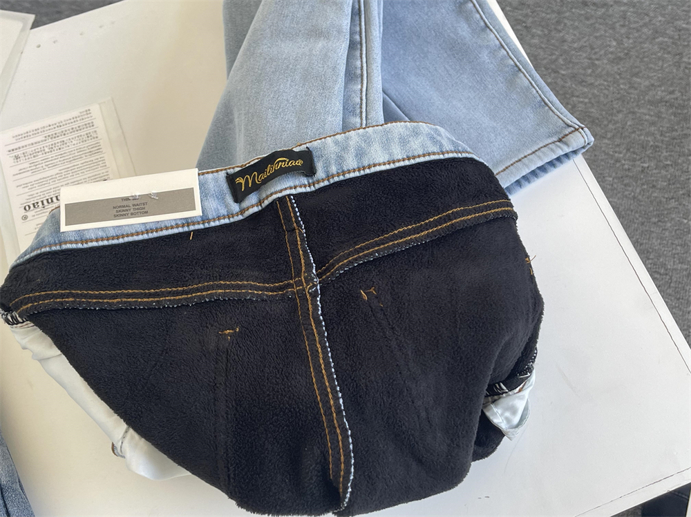 2022 new velvet warm gray high-waist elastic denim trousers women look thin skinny feet pencil leggings