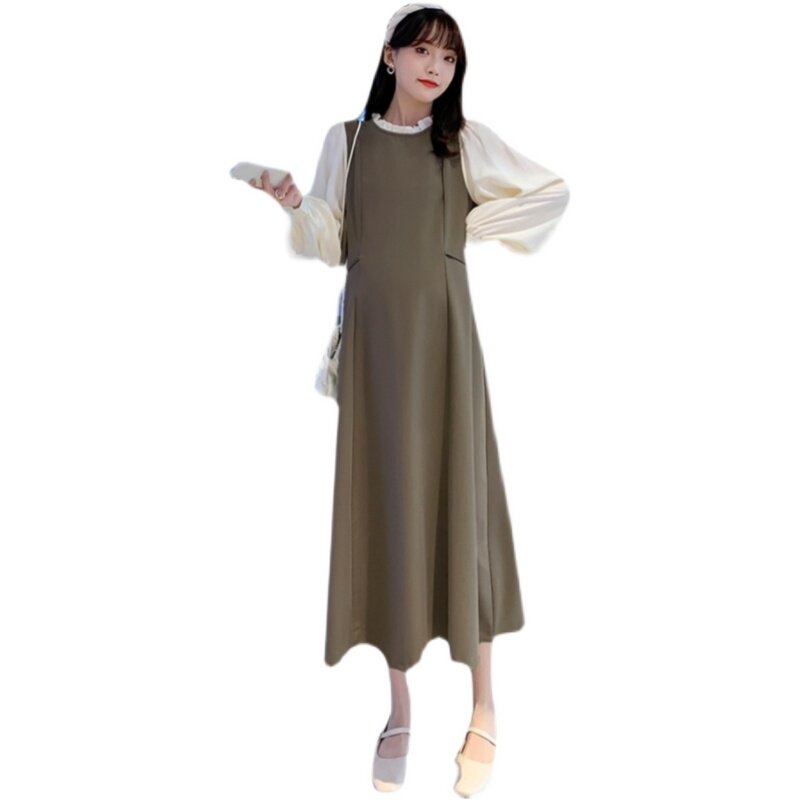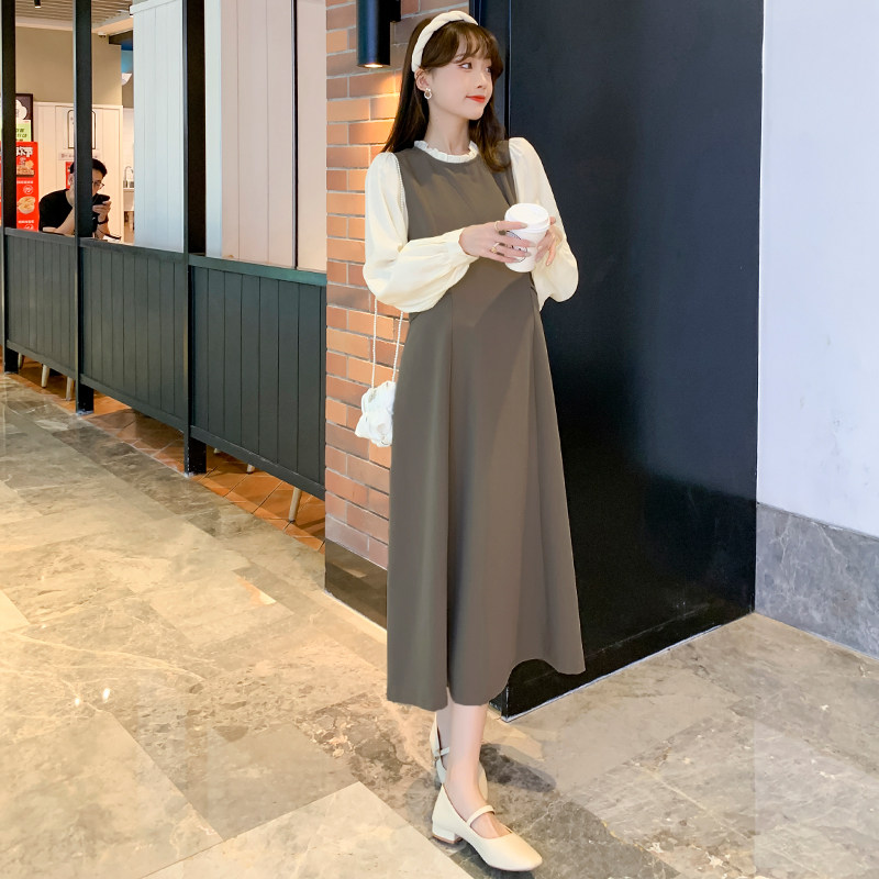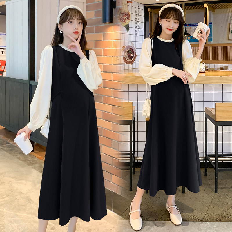 Maternity wear spring and autumn wear large size long sleeves tops autumn and winter fashion pieces take over the knee long skirt loose maternity dress