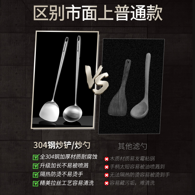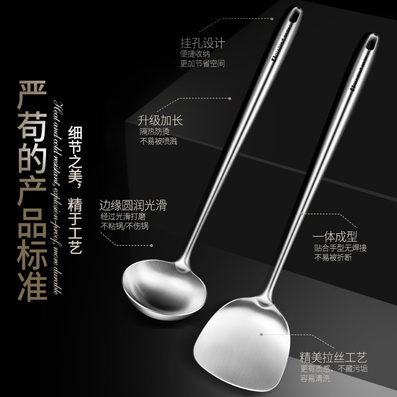 Germany 304 stainless steel frying spoon cook special lengthened cooking spoon household cooking shovel pot shovel spoon set