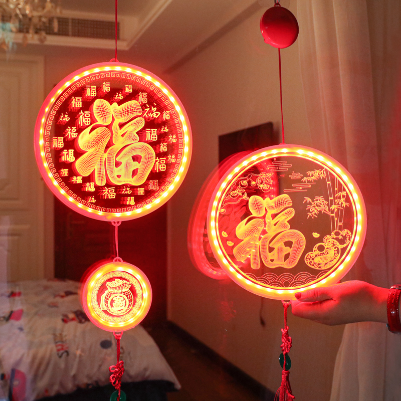 Lucky word ornaments 2023 Year of the Tiger New Year decorations blessing bag pendant Spring Festival scene layout Chinese New Year supplies led lights