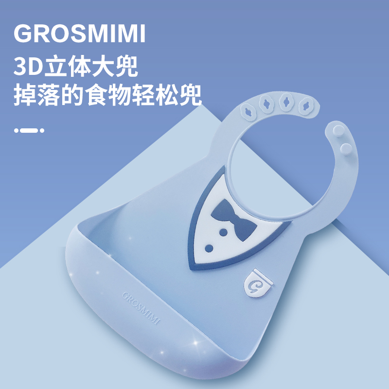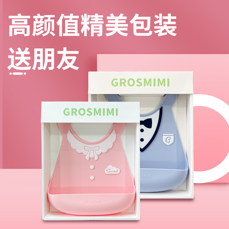 Grosmimi Grosmimi baby eating waterproof bib children's silicone super soft food pocket auxiliary food artifact